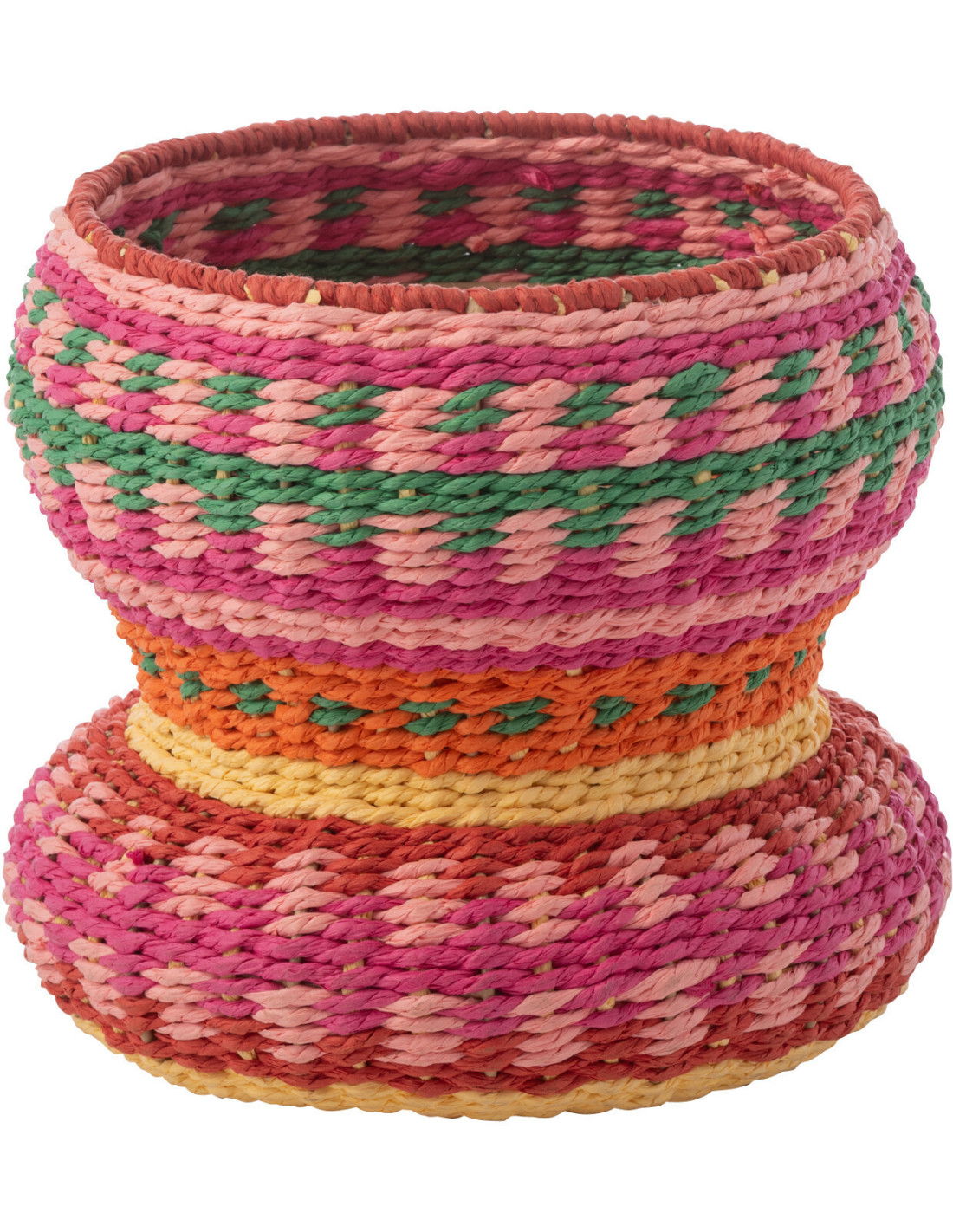 Vase déco original bohème tropical H 23 cm Papier Rose fuchsia Tressé Métal Palmarosa