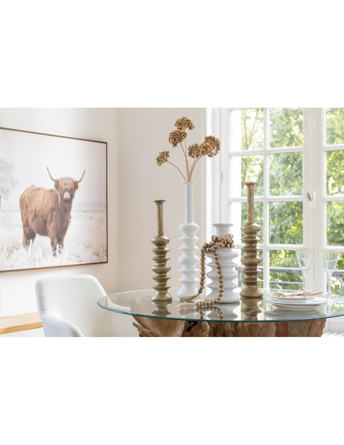 Vase design Allongé XL Hauteur 60 cm en Céramique Doré Alba