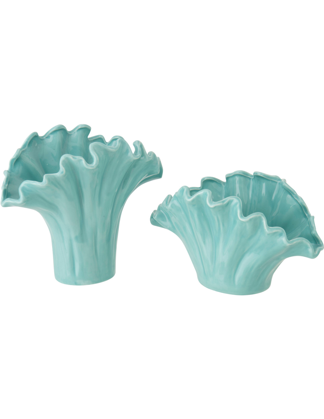 Vase design bord de mer Coquillage H 19 cm Porcelaine Vert Oceano