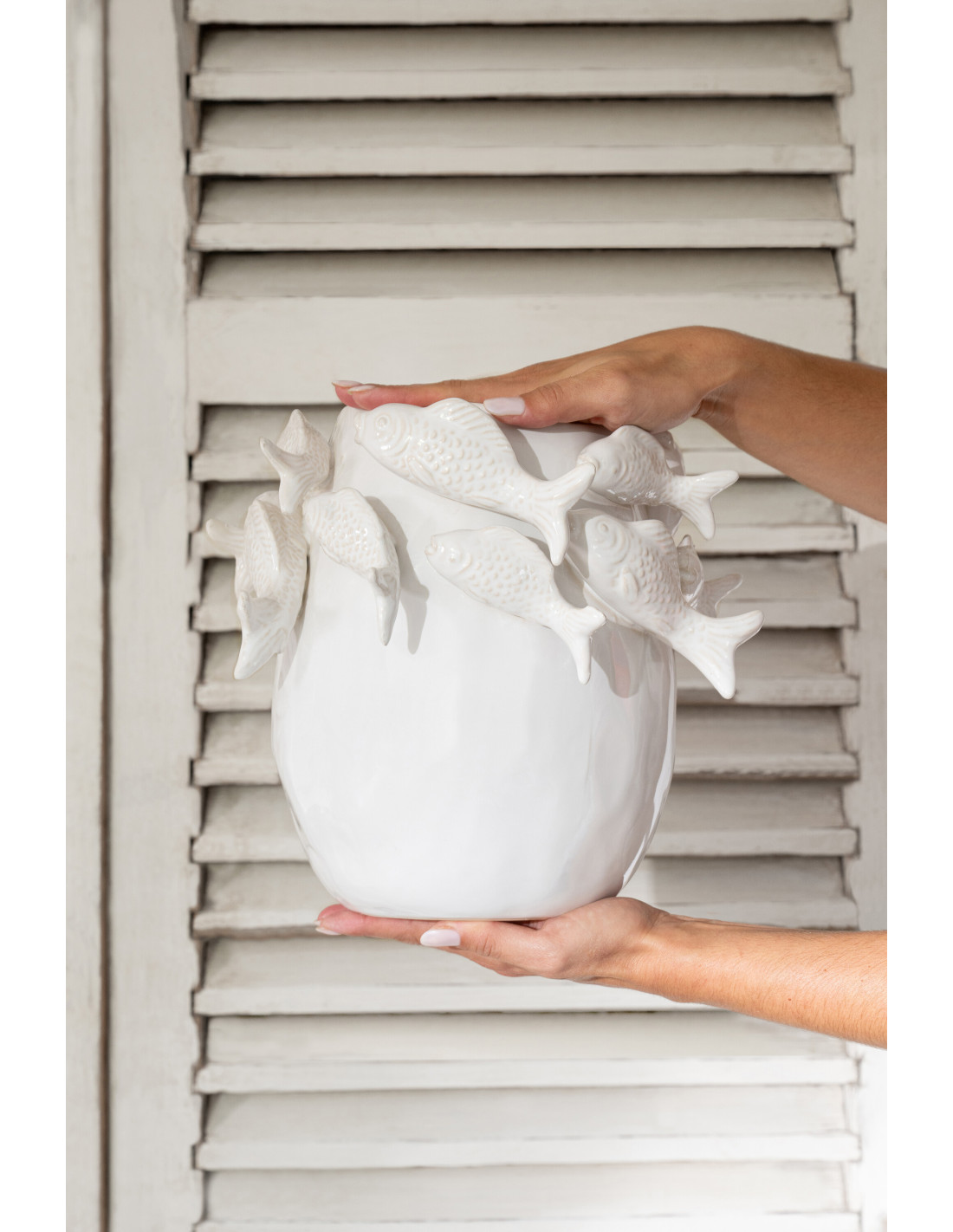 Vase design Bord de mer Poissons Organique H 27 cm Argile Blanc écru Thalassa