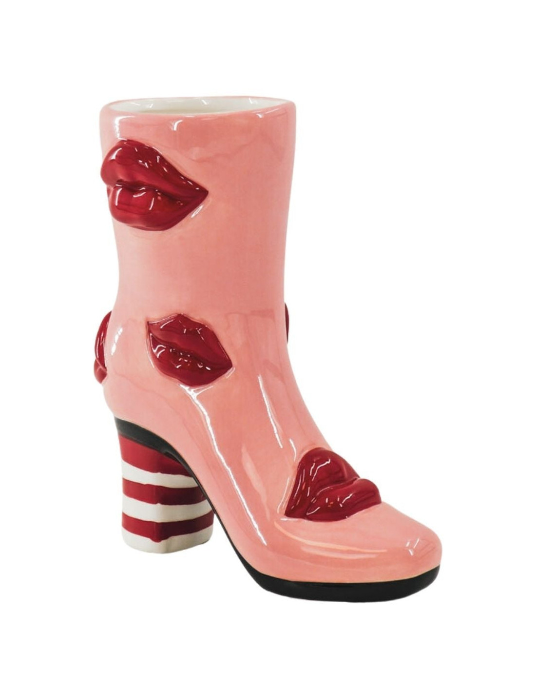 Vase design Botte de cowboy H 23 cm Céramique Rose Motif Lèvres Western
