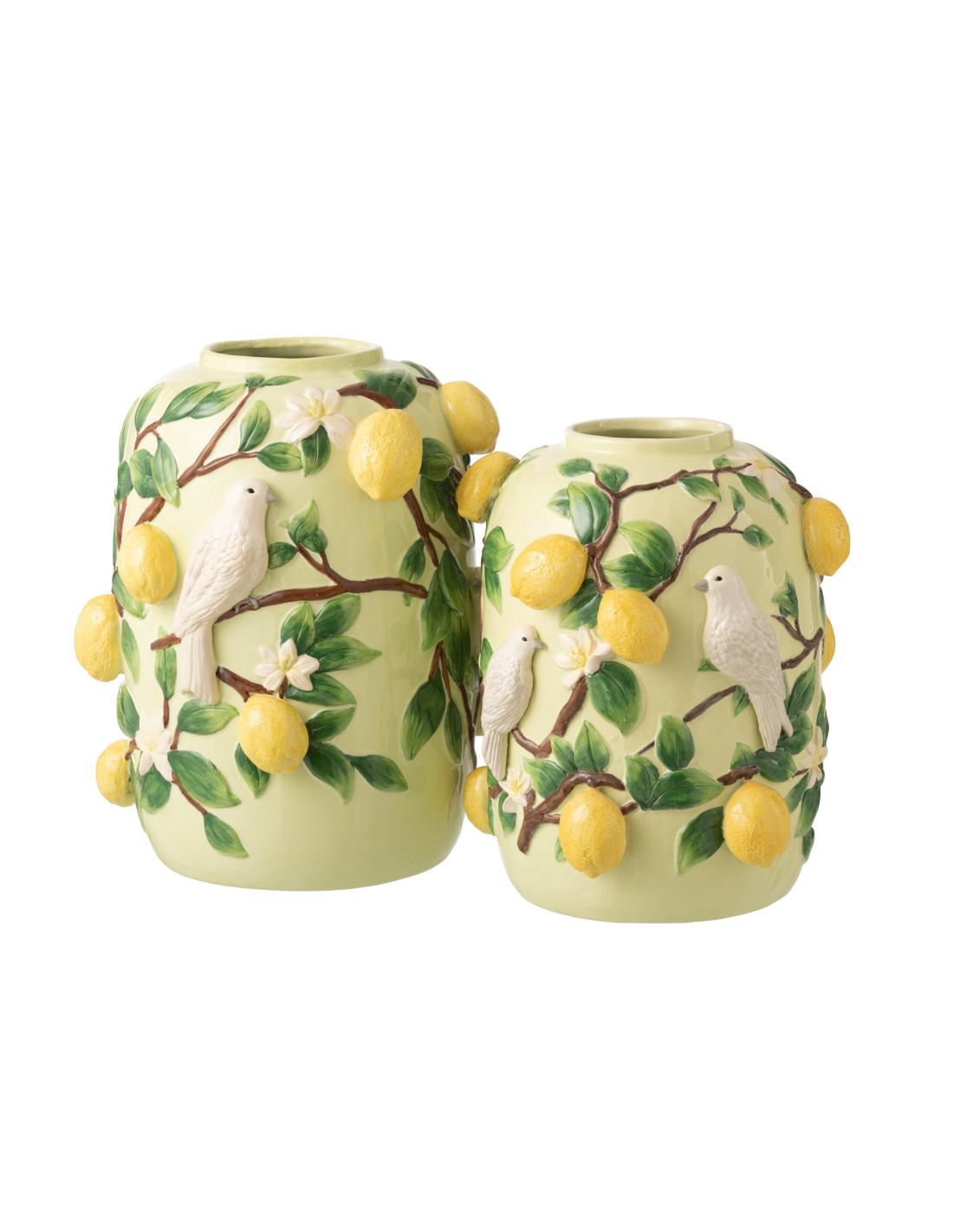Vase design méditerranéen Oiseaux & Citrons H 40 cm Céramique Vert Jaune Zestinio