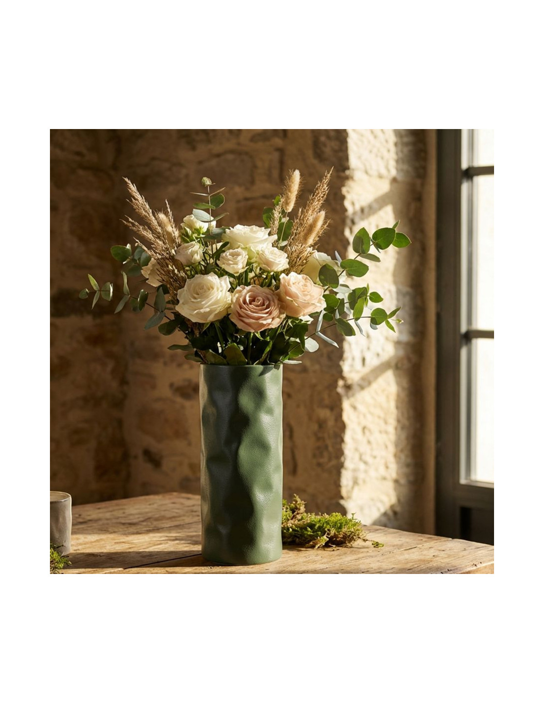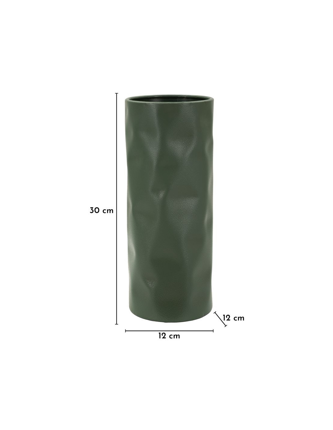 Vase design minimaliste Cylindrique H 30 cm Métal Vert Martelé Norimberga