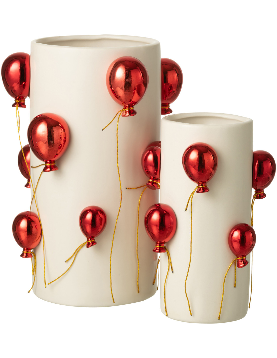 Vase design moderne Ballons Cylindrique Hauteur 30 cm en Céramique Blanc Rouge Carnival