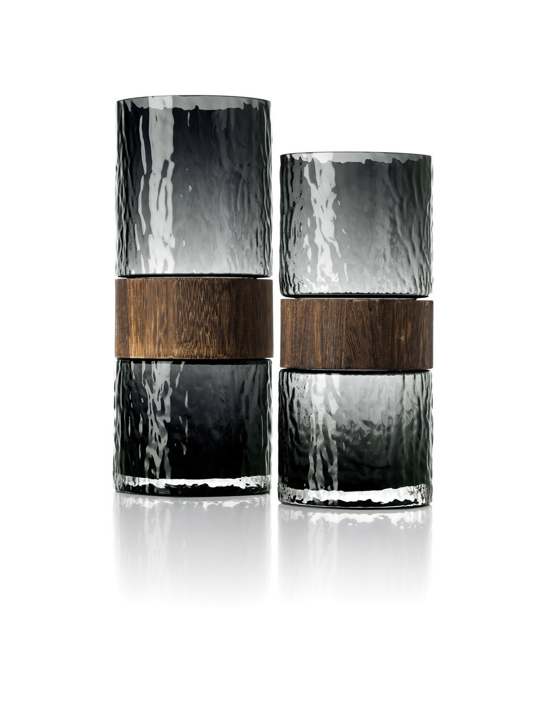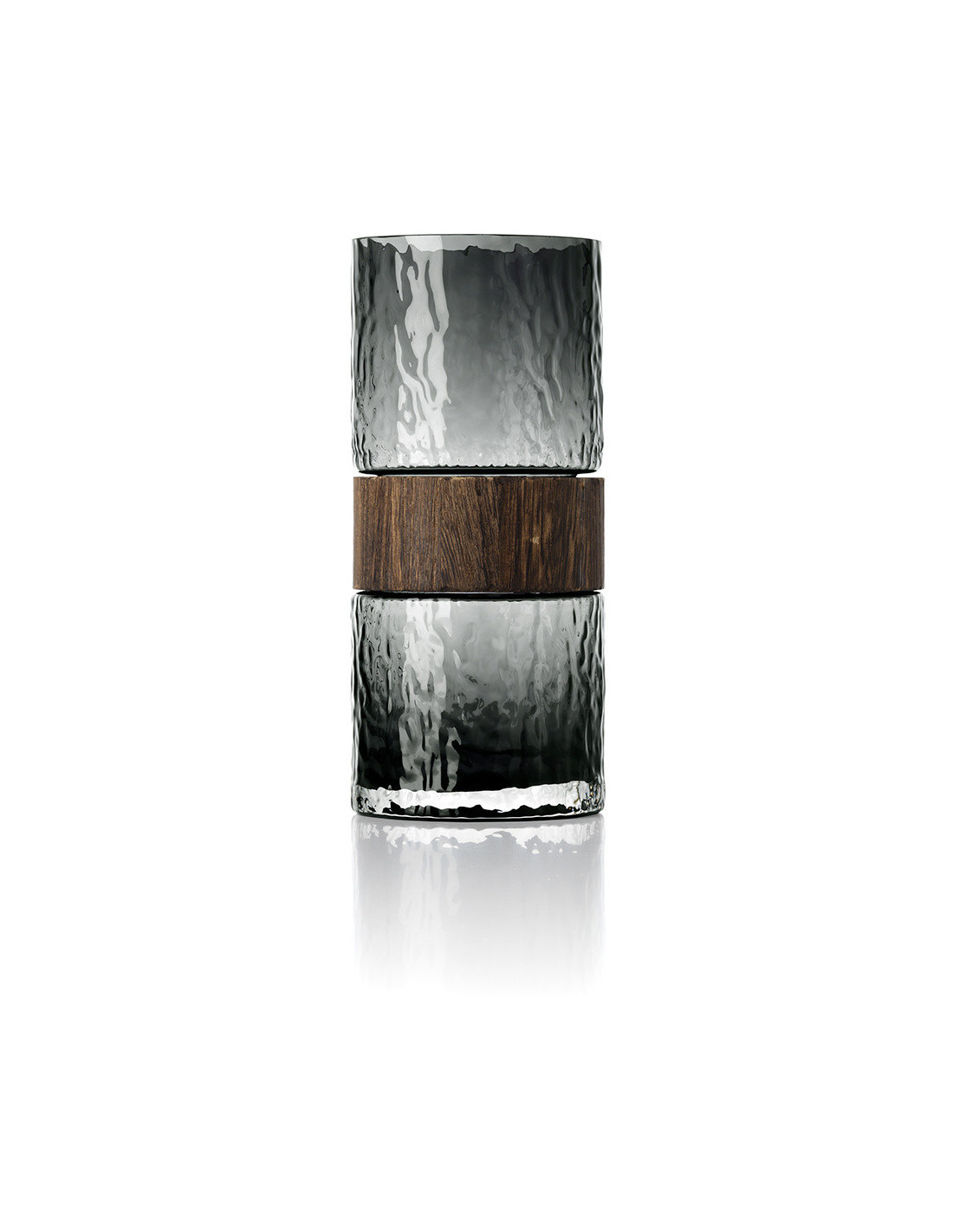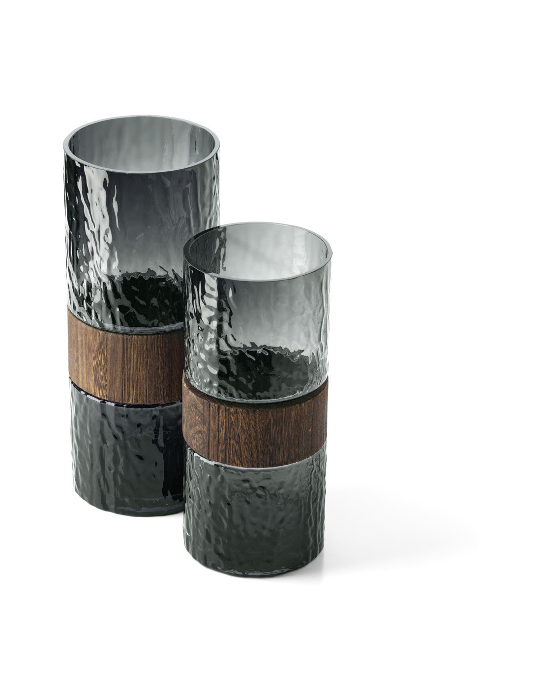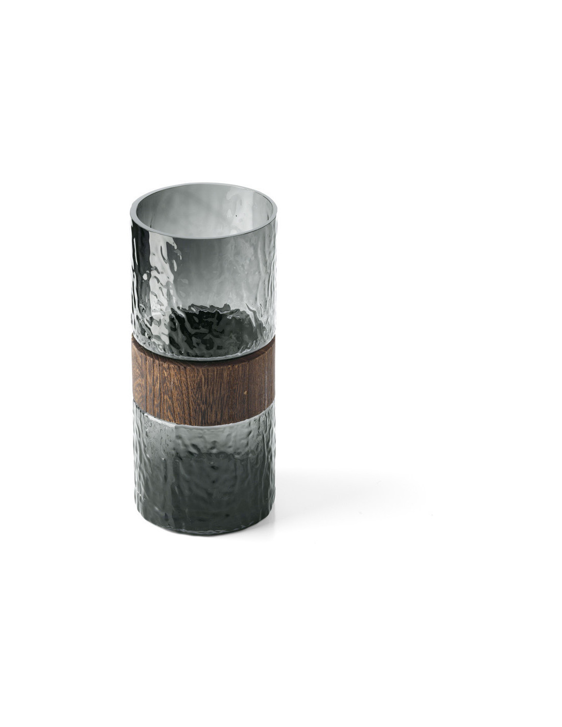 Vase design moderne Cylindrique H 24 cm Verre Gris foncé Bois Marron The Wood You Be Mine