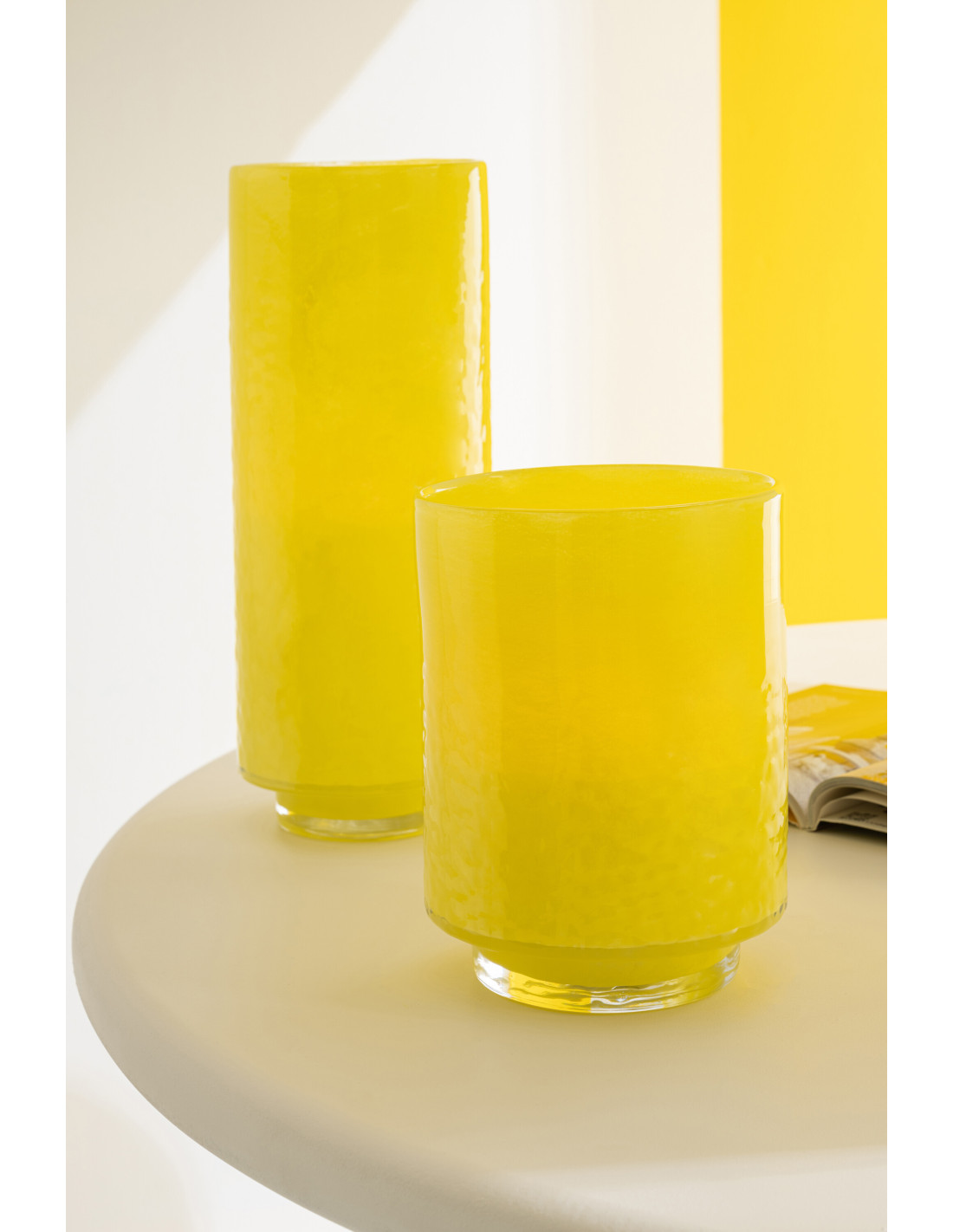 Vase design moderne Cylindrique H 27 cm Verre Jaune Motif relief Sculpa