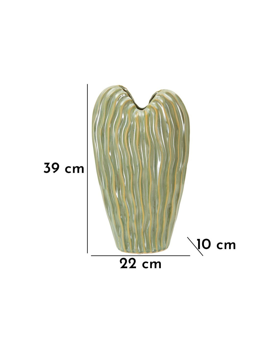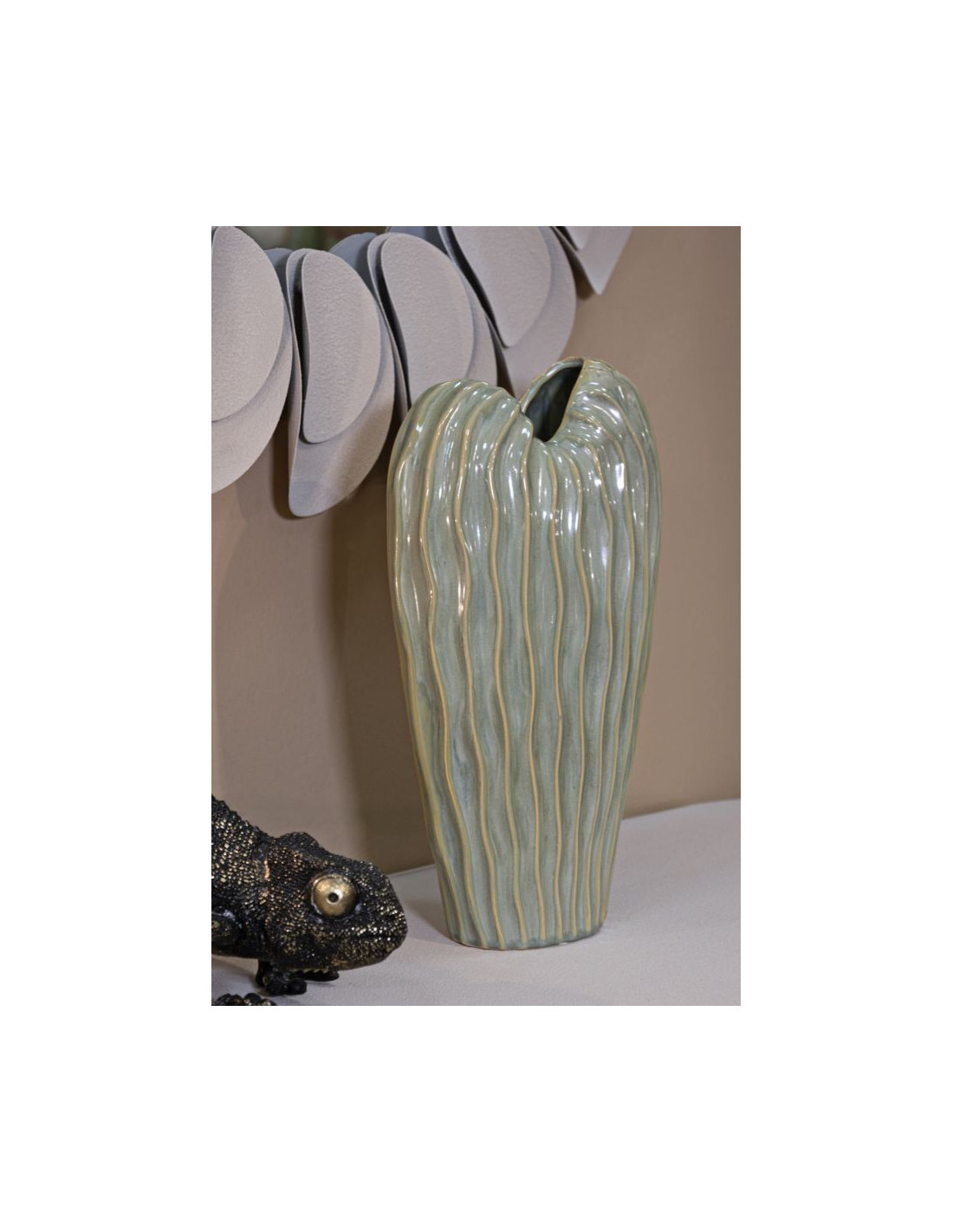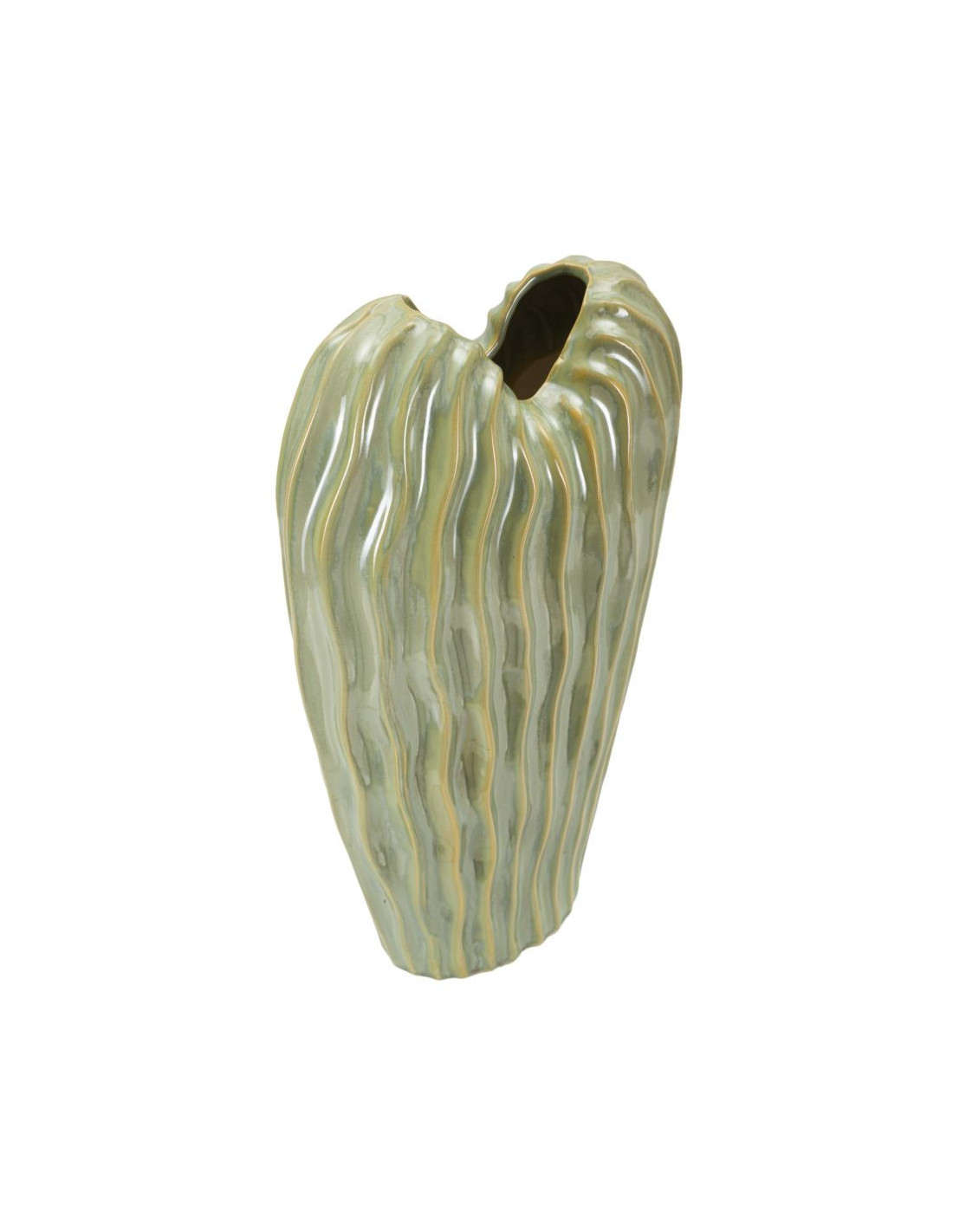 Vase design ondulé Organique H 39 cm Céramique Vert Venice