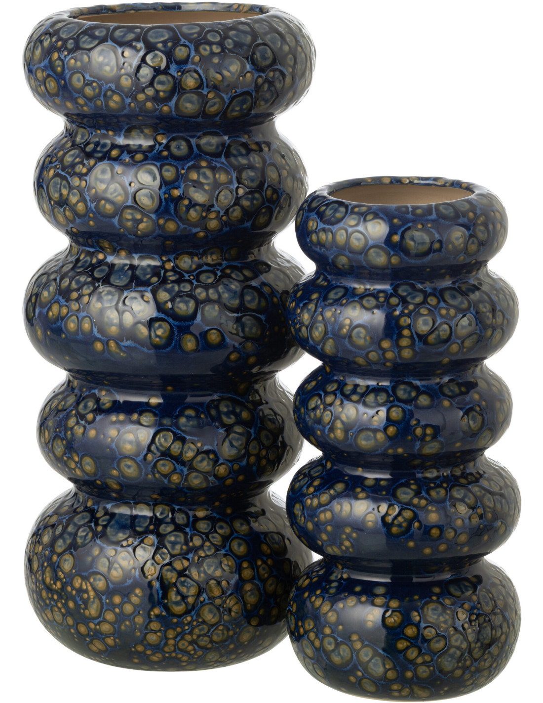Vase design organique Totem Totem H 30 cm Porcelaine Bleu foncé Motif taches Stapel