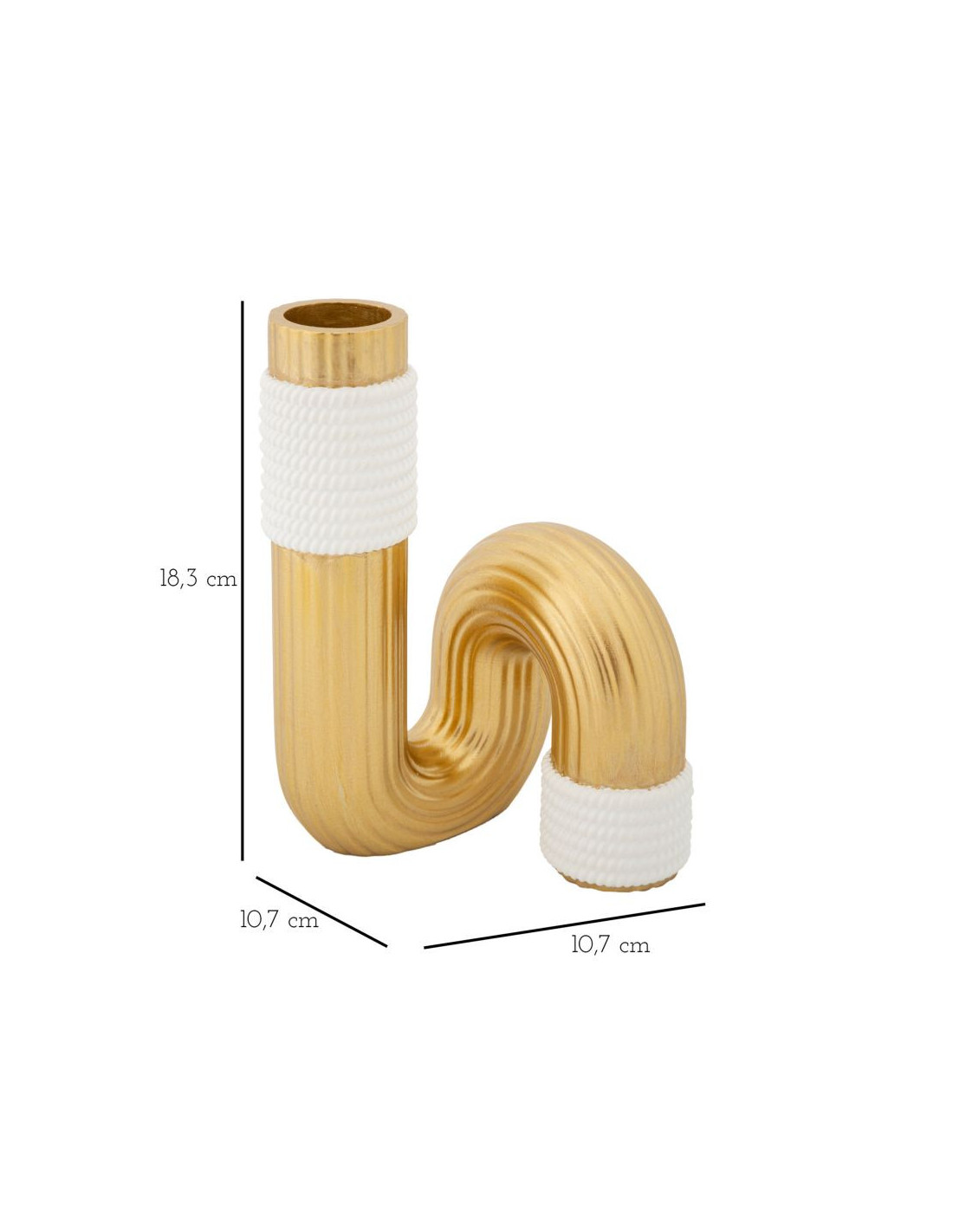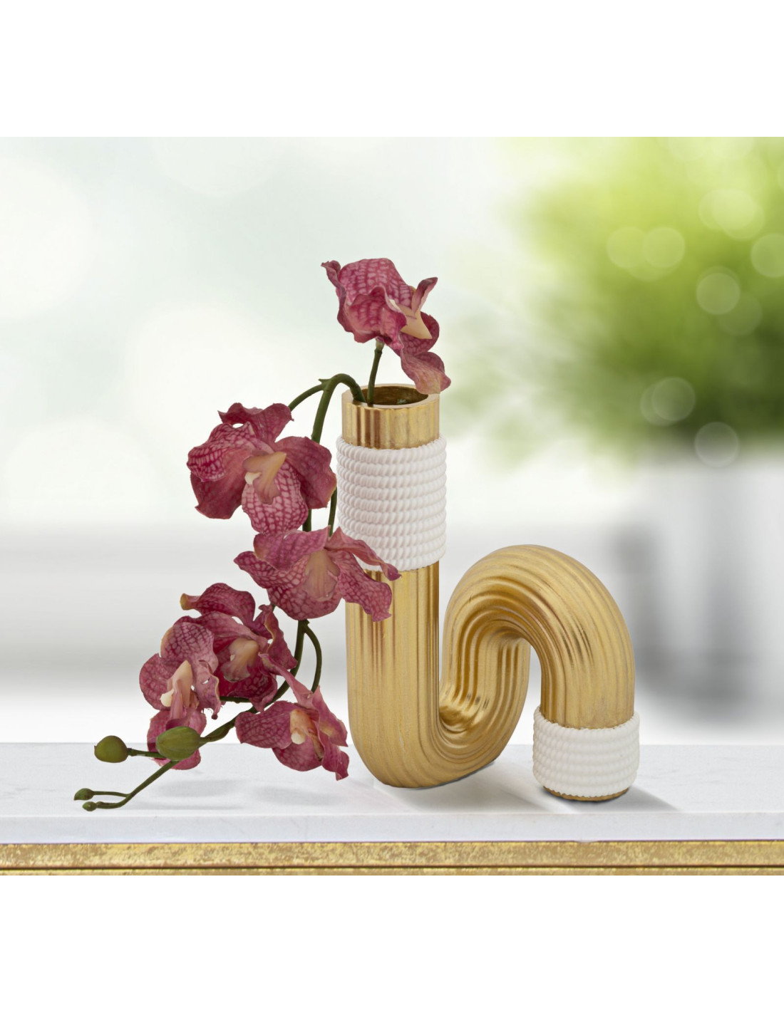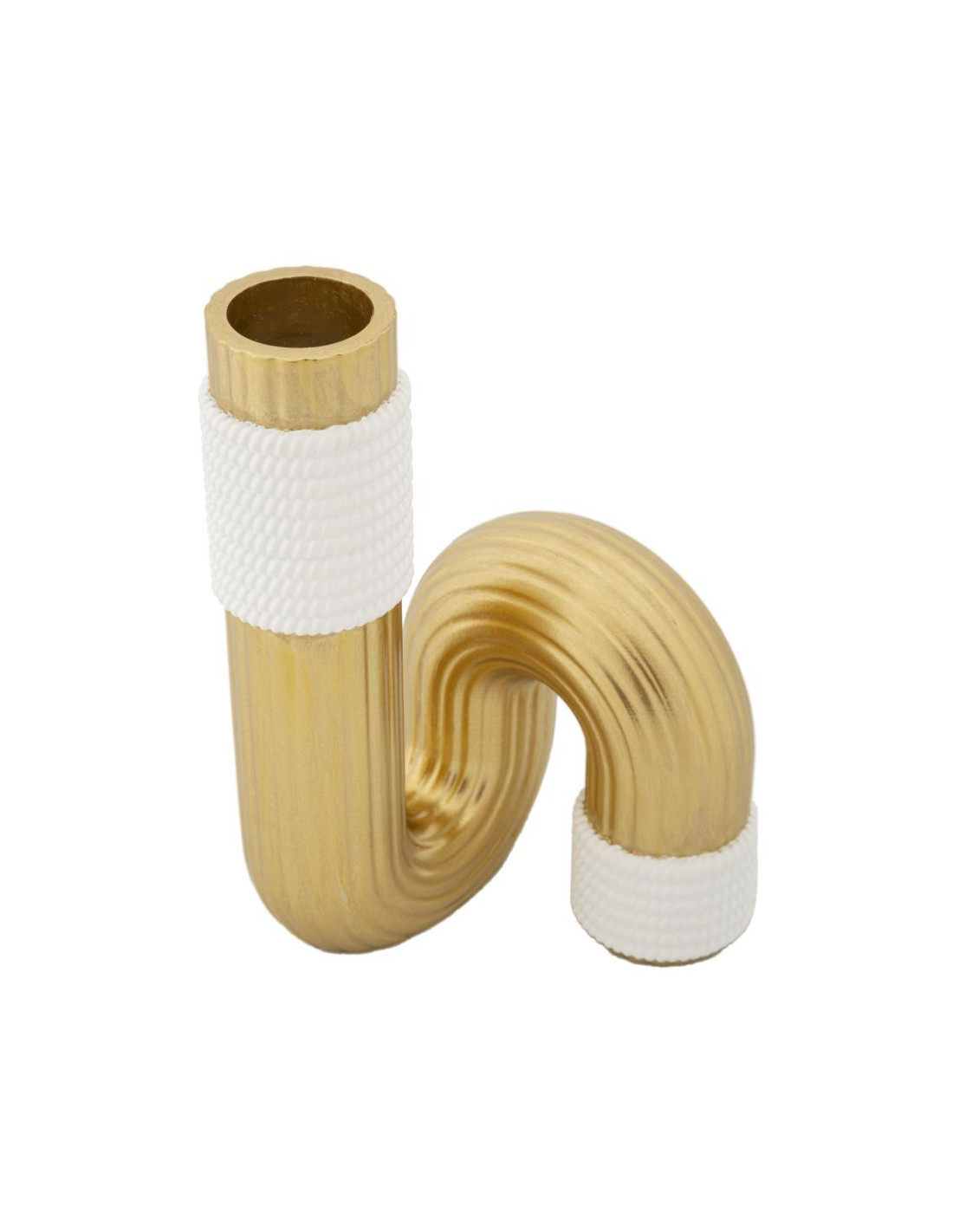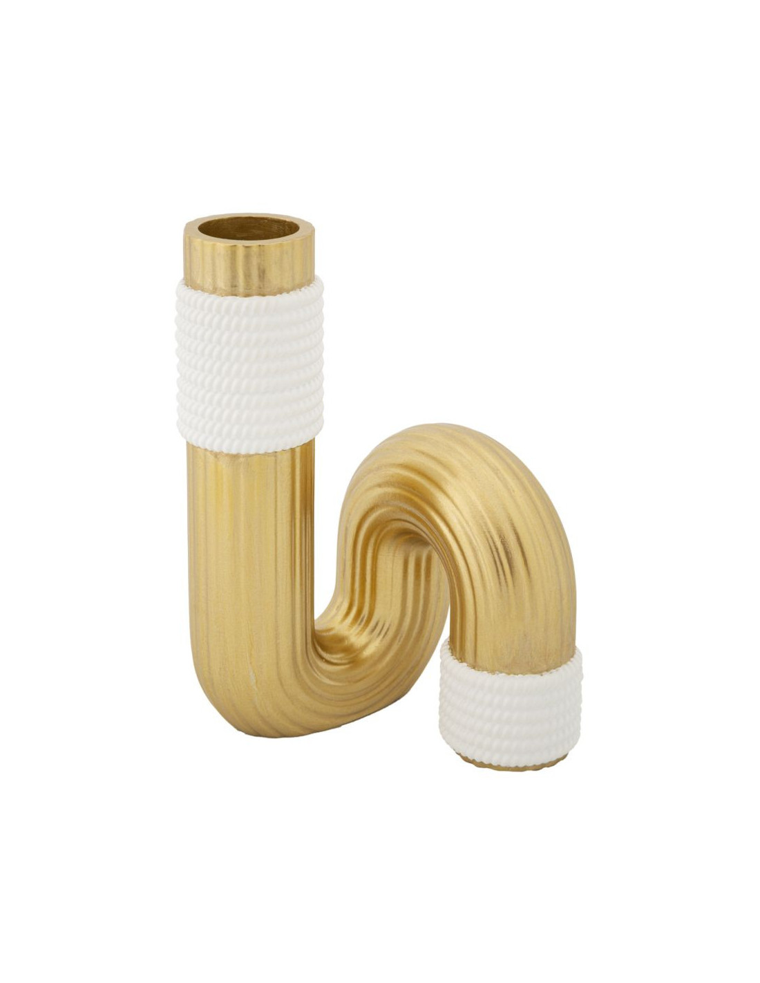Vase design original Tuyau Hauteur 18 cm en Résine Doré Blanc Bann