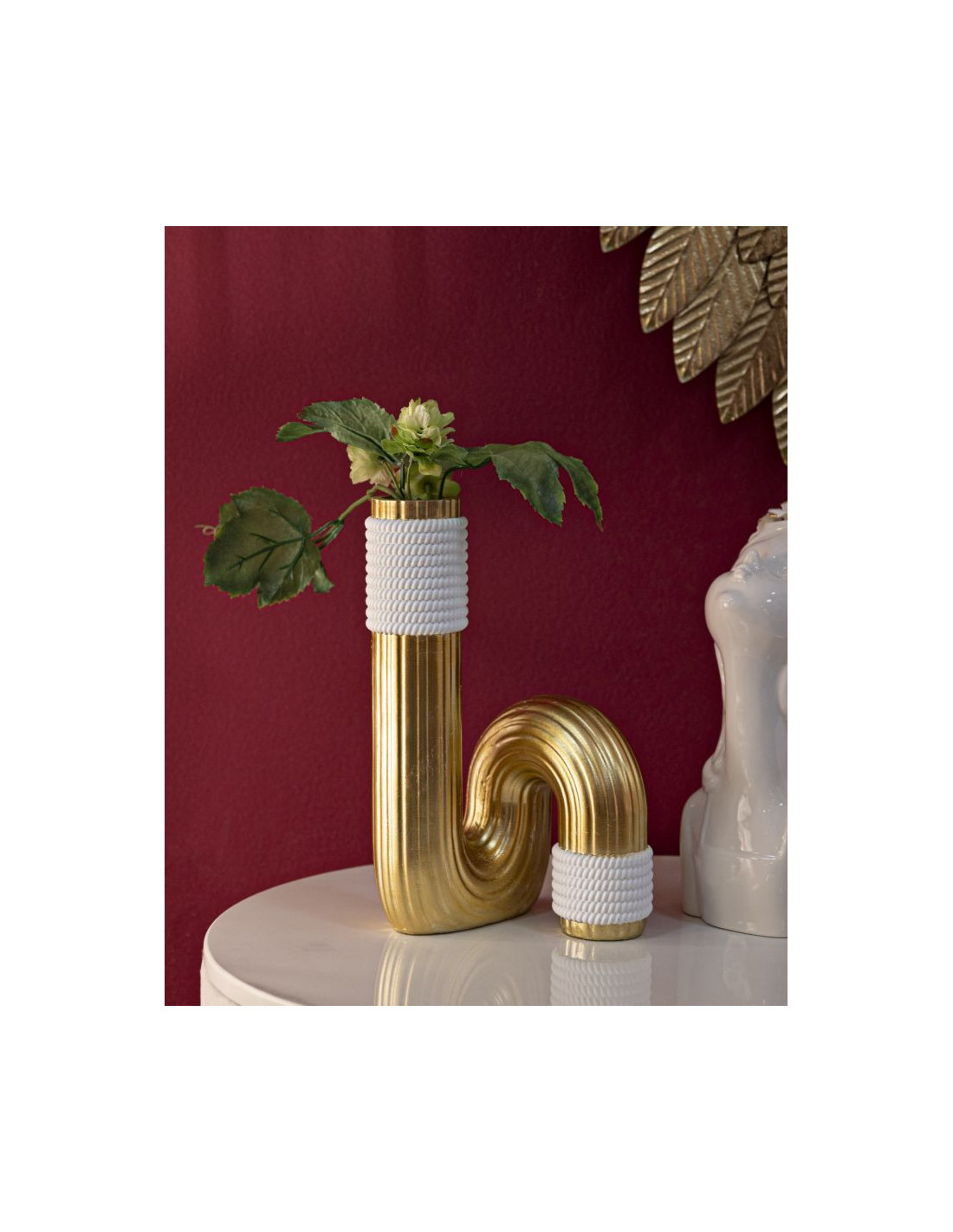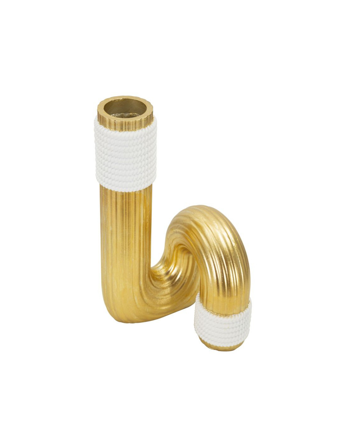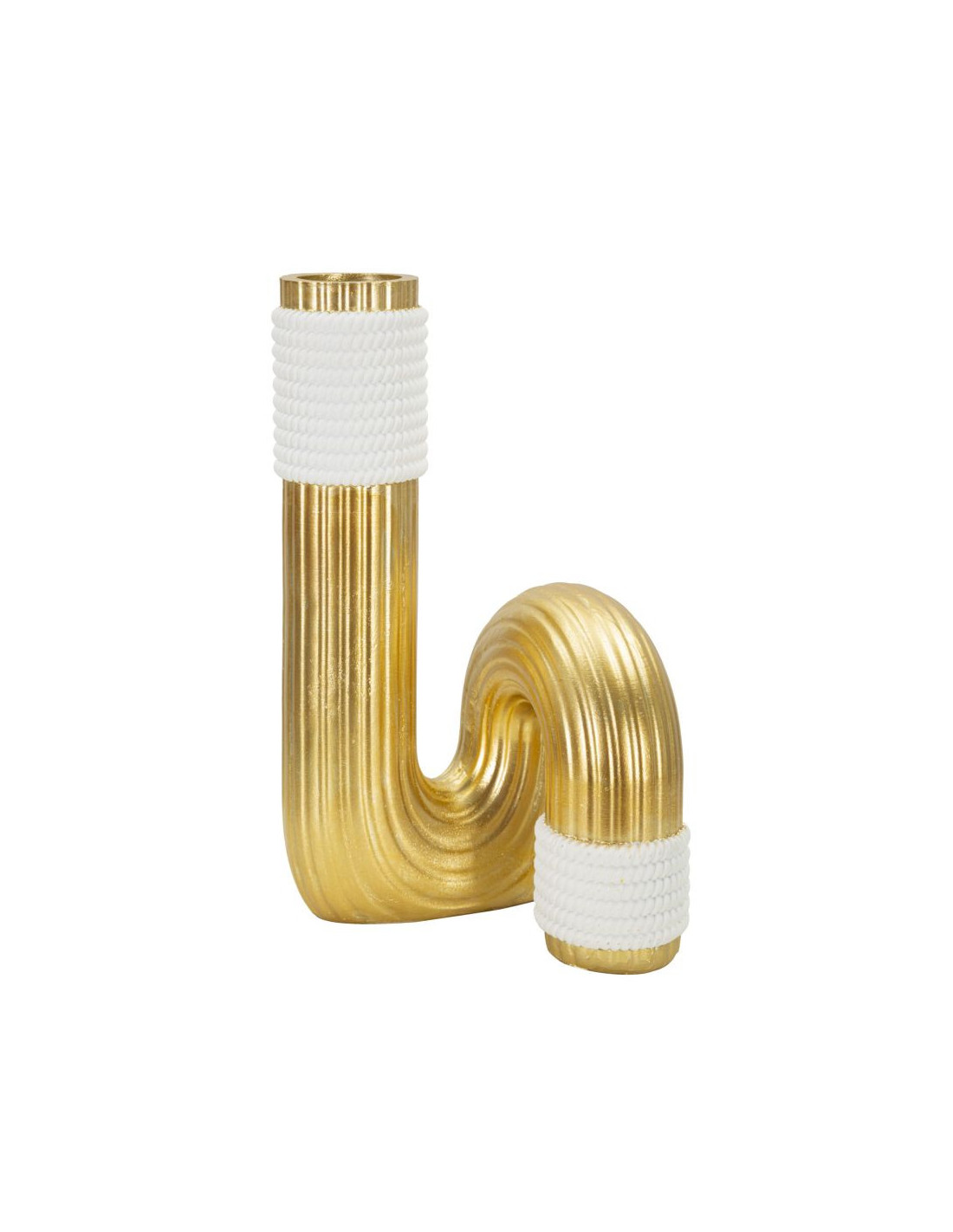 Vase design original Tuyau Hauteur 25 cm en Résine Doré Blanc Bann