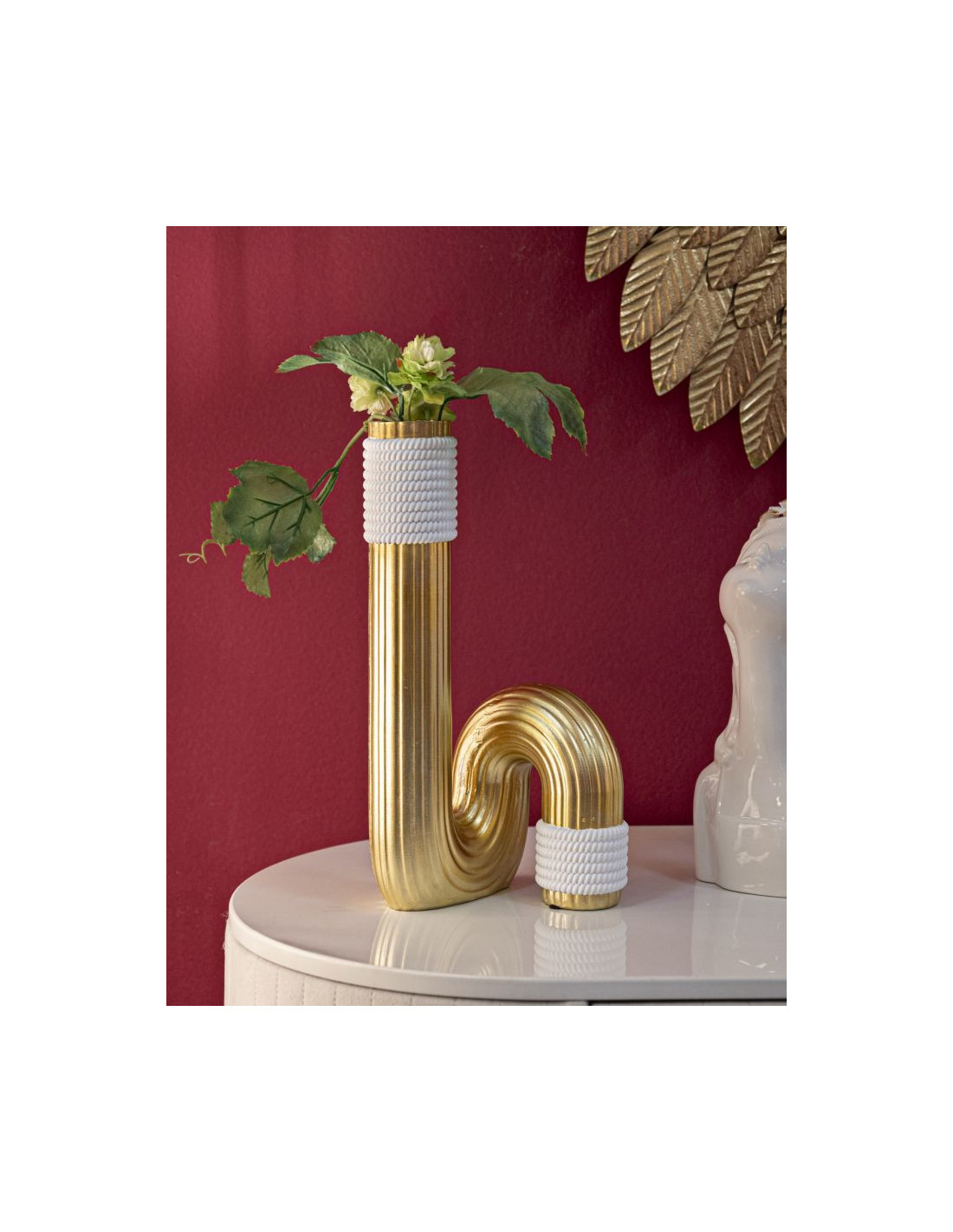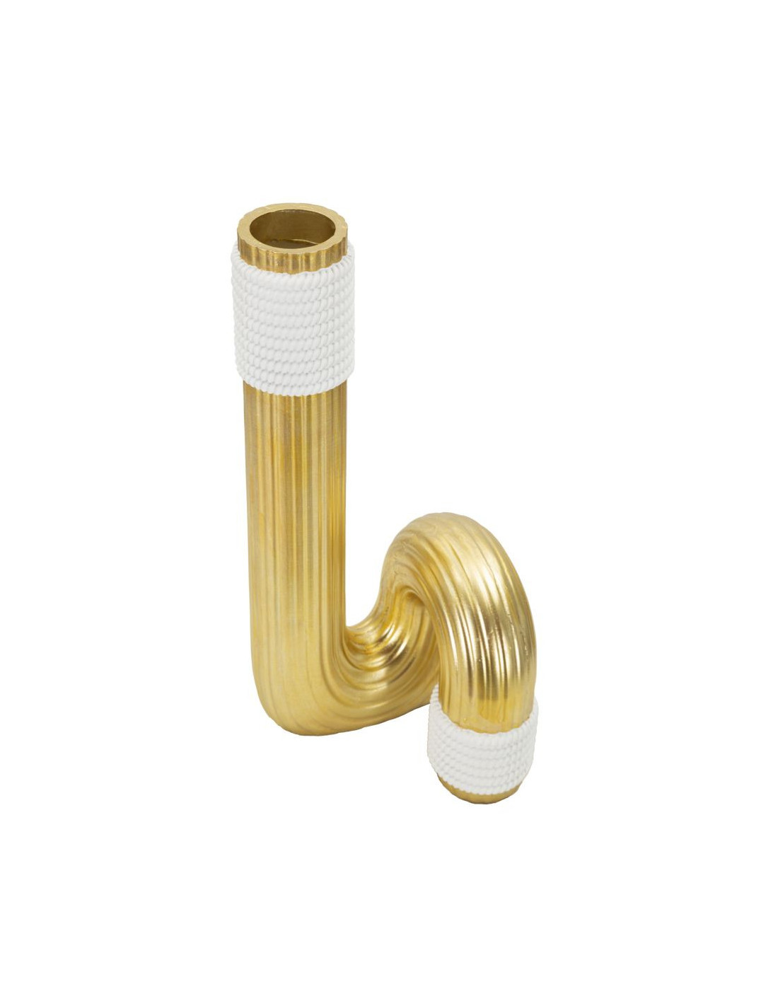 Vase design original Tuyau Hauteur 30 cm en Résine Doré Blanc Bann