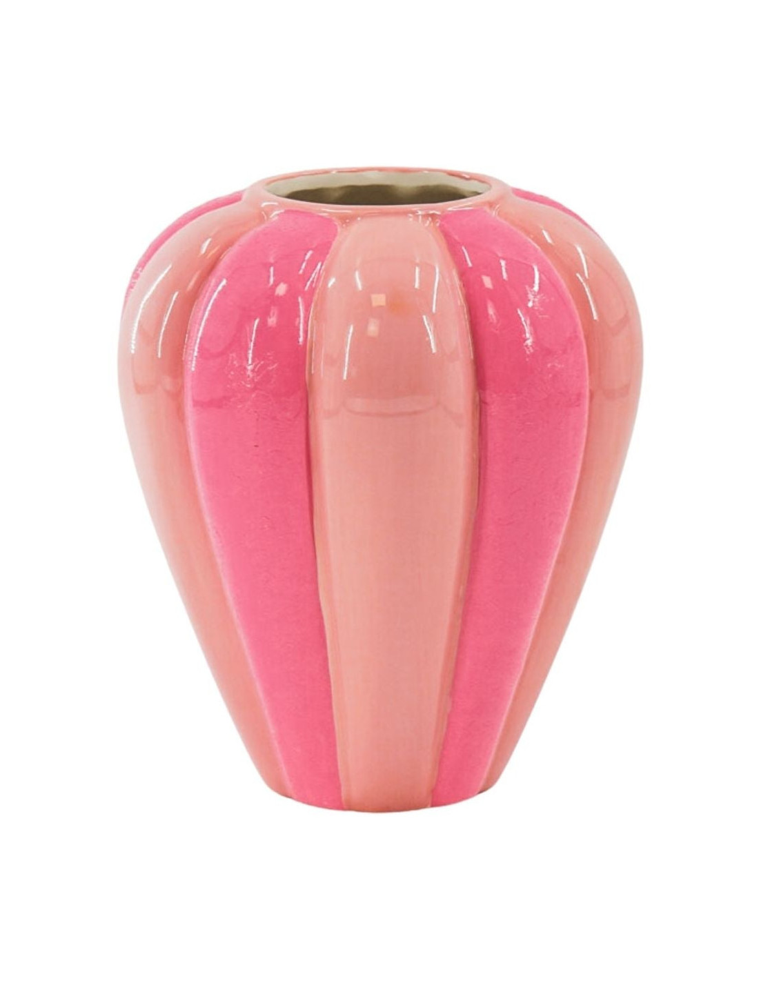 Vase design Ovale H 21 cm Céramique Rose clair Rose fluo Motif plissé Pleated