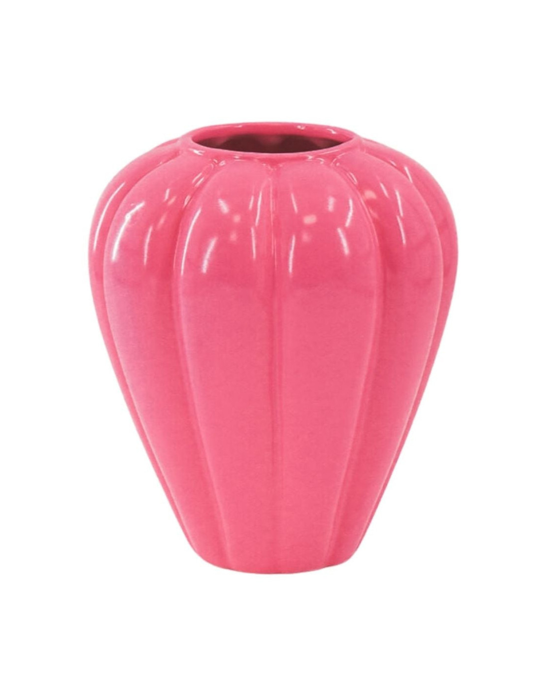 Vase design Ovale H 21 cm Céramique Rose Motif plissé Pleated