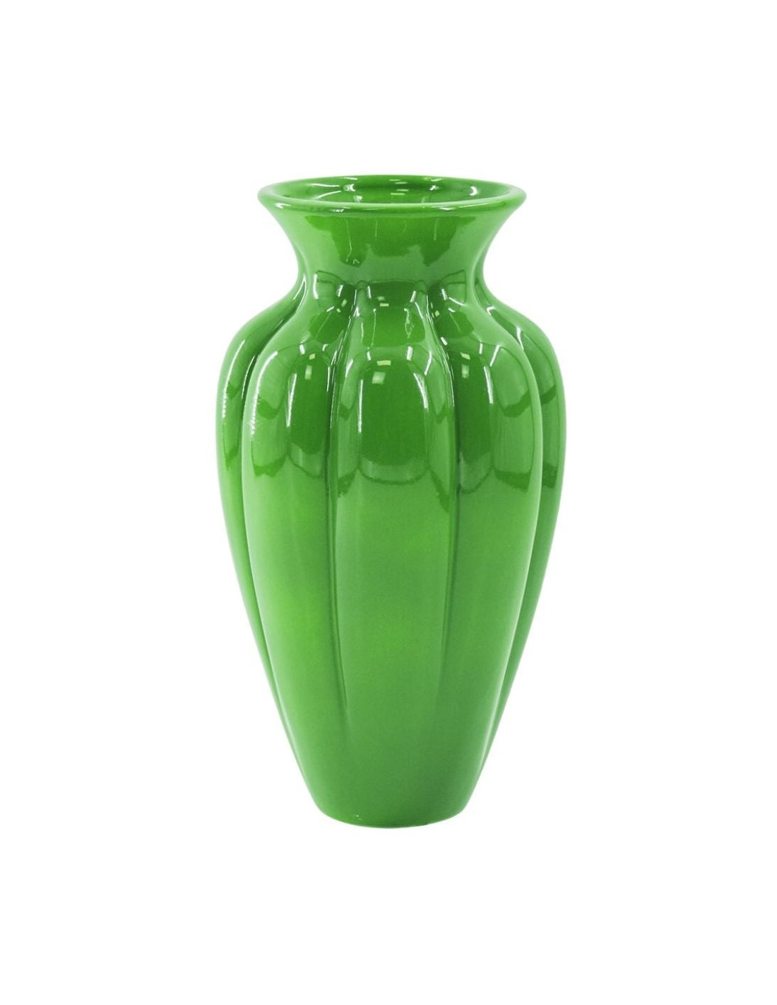 Vase design Ovale H 29 cm Céramique Vert Motif plissé Pleated