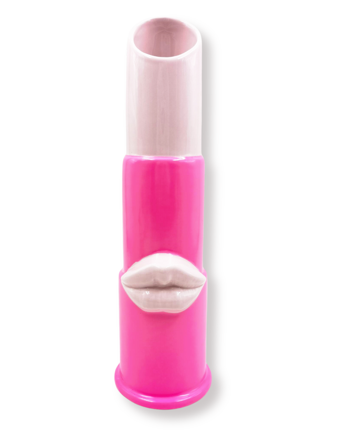 Vase design Rouge à lèvres H 35 cm Céramique Rose clair Rose fluo Lipstick