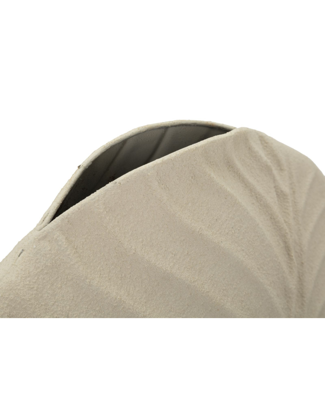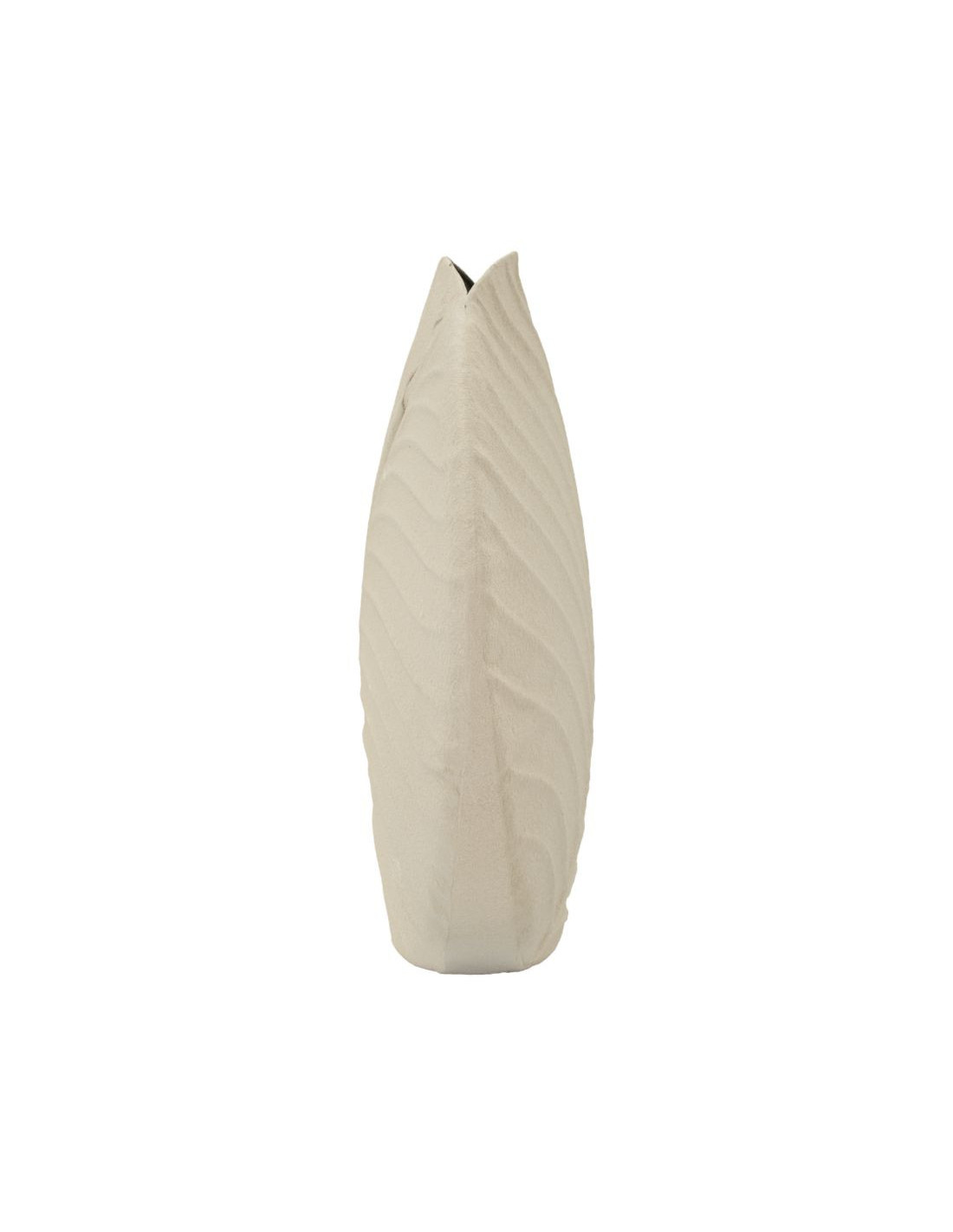 Vase design wabi-sabi Rond Métal Blanc crème Motif feuille Dune H 32 cm