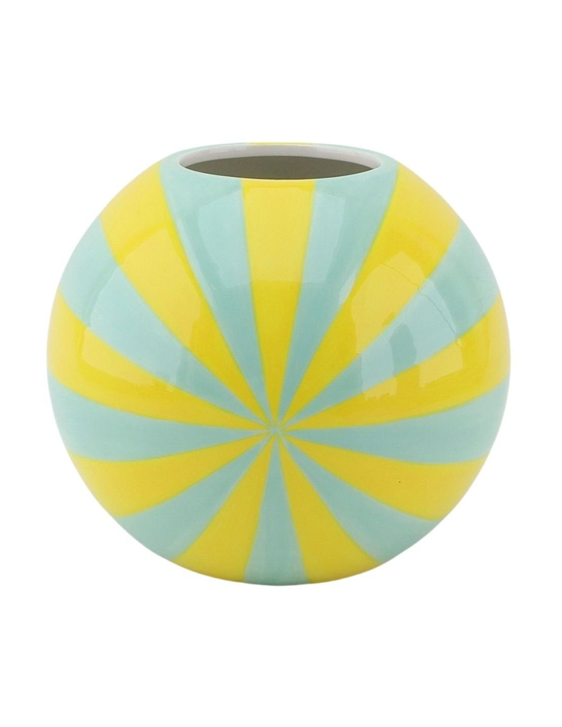 Vase dopamine Tourbillon Boule 15 cm Céramique Jaune Vert menthe Swirl