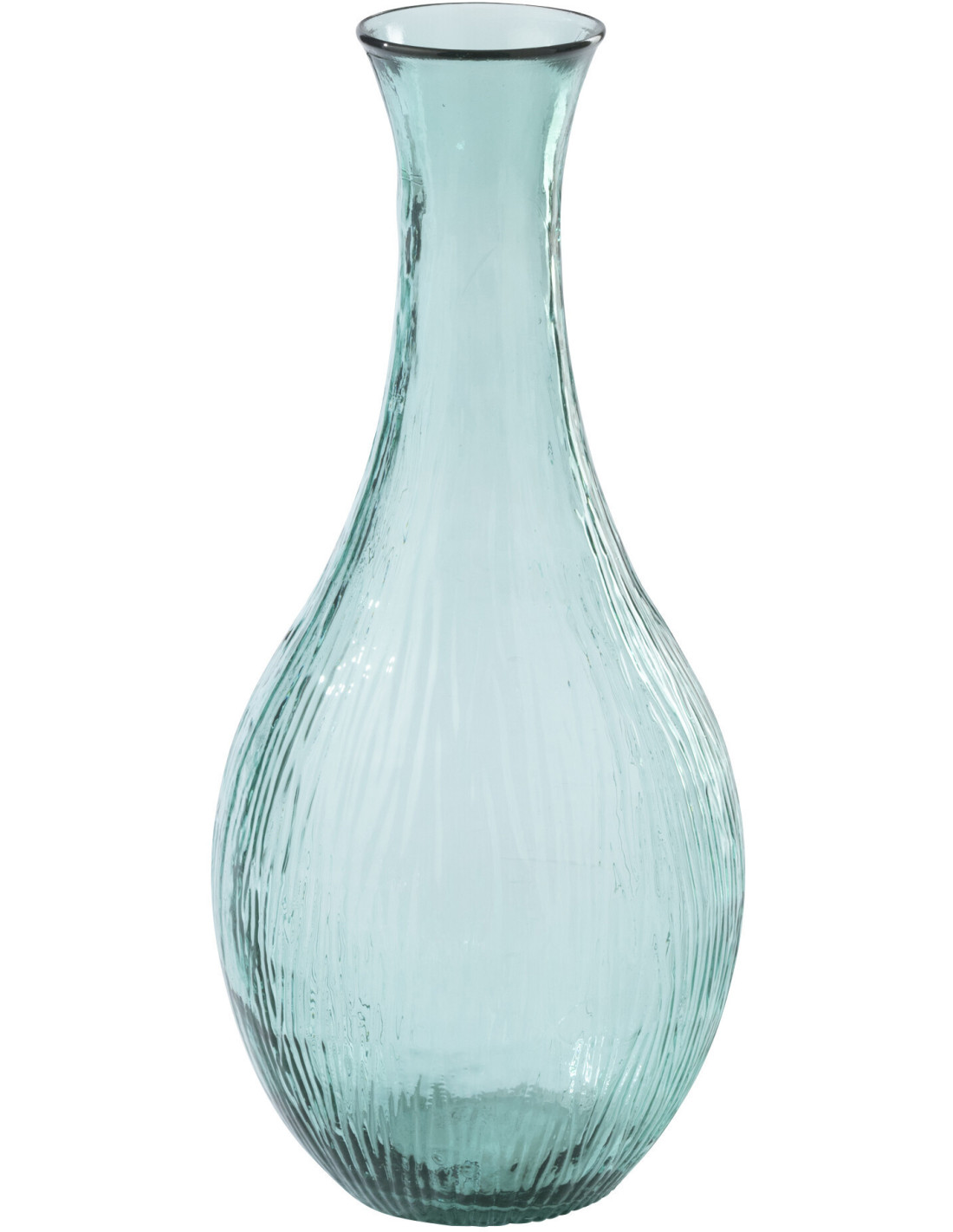Un vase en verre bleu azur à la silhouette élancée et aux lignes striées, pensé pour donner de la hauteur et du caractère à vos compositions.