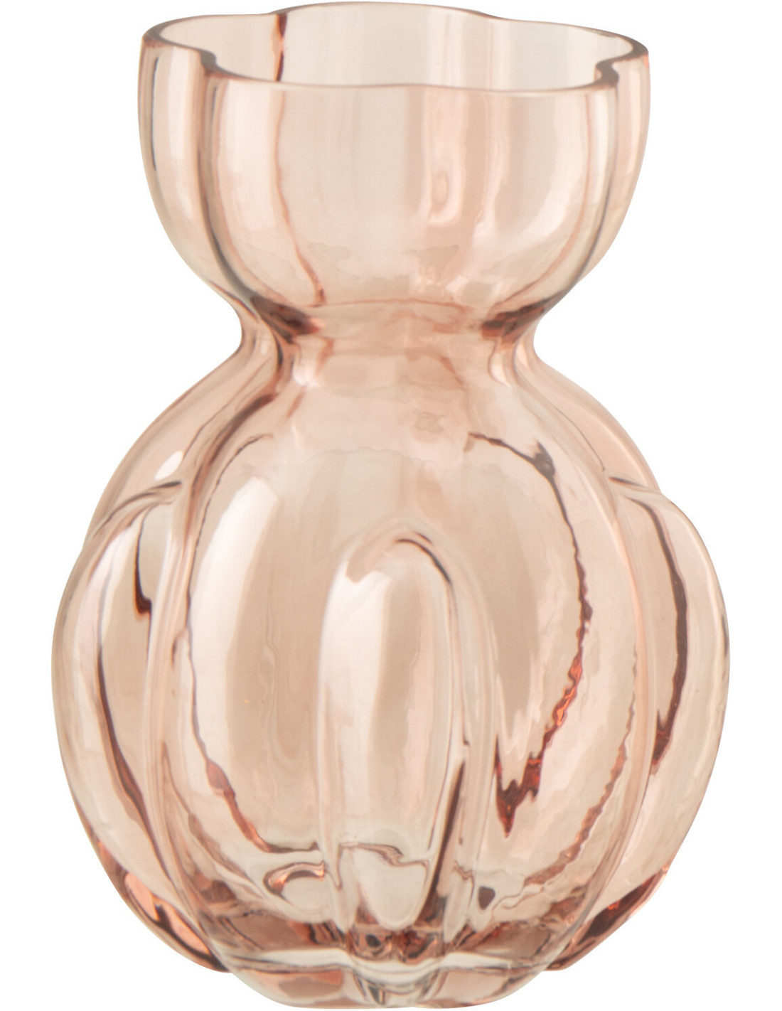 Un vase en verre rose saumon aux formes ondulées, pensé pour apporter douceur et relief à vos compositions florales.
