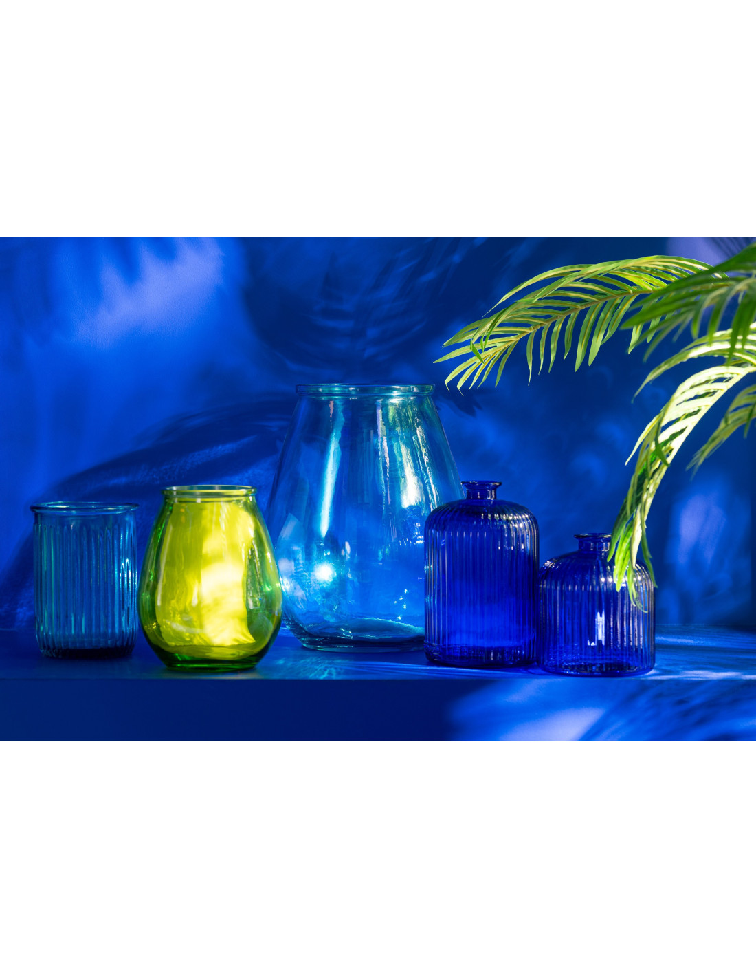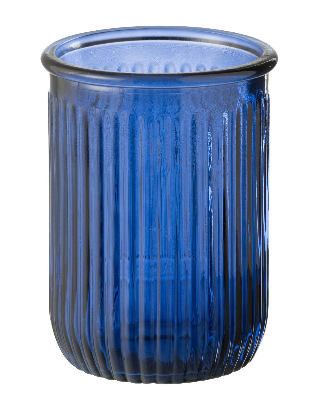 Vase moderne Bocal Hauteur 20 cm en Verre Bleu Motif rayures Zyku - 1