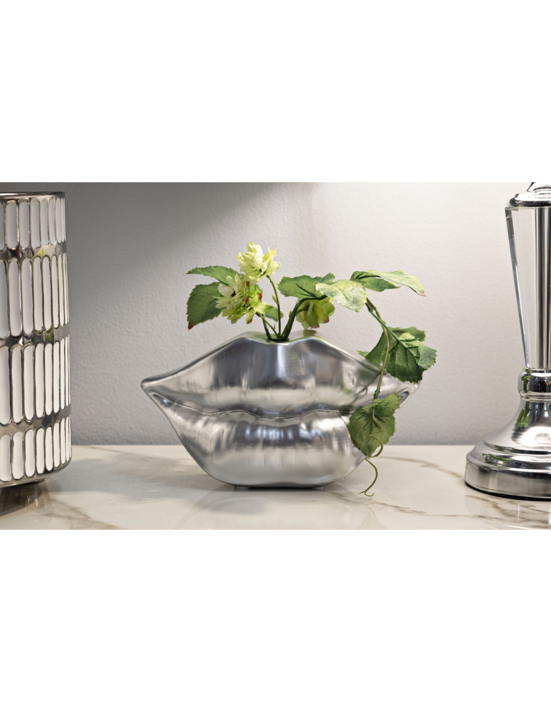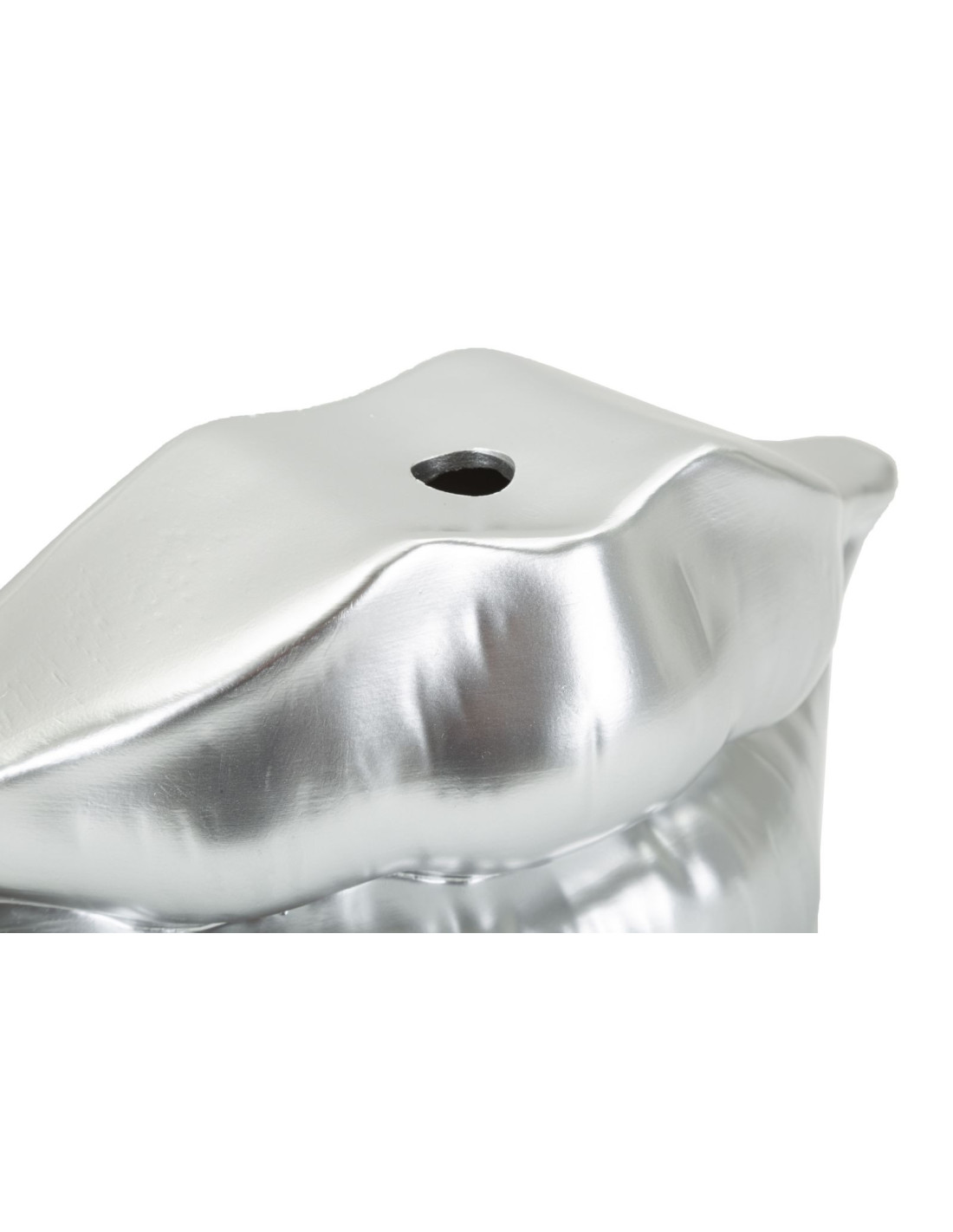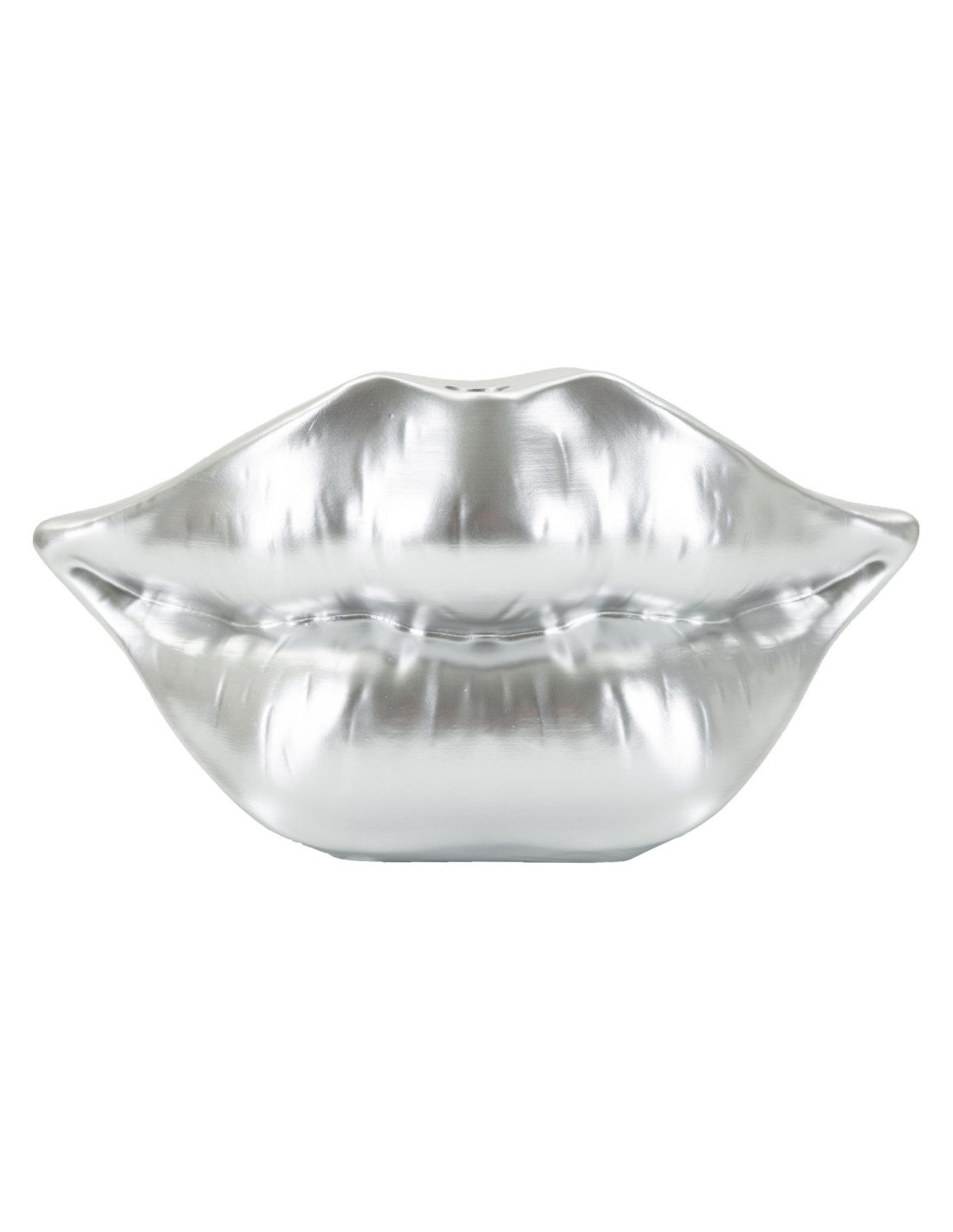 Lip reprend la silhouette d’une bouche sensuelle dans une version argentée et moderne. Son éclat métallisé et ses courbes généreuses lui donnent une allure pop et chic à la fois. Dimensions : 23 x 8 x 12 cm.