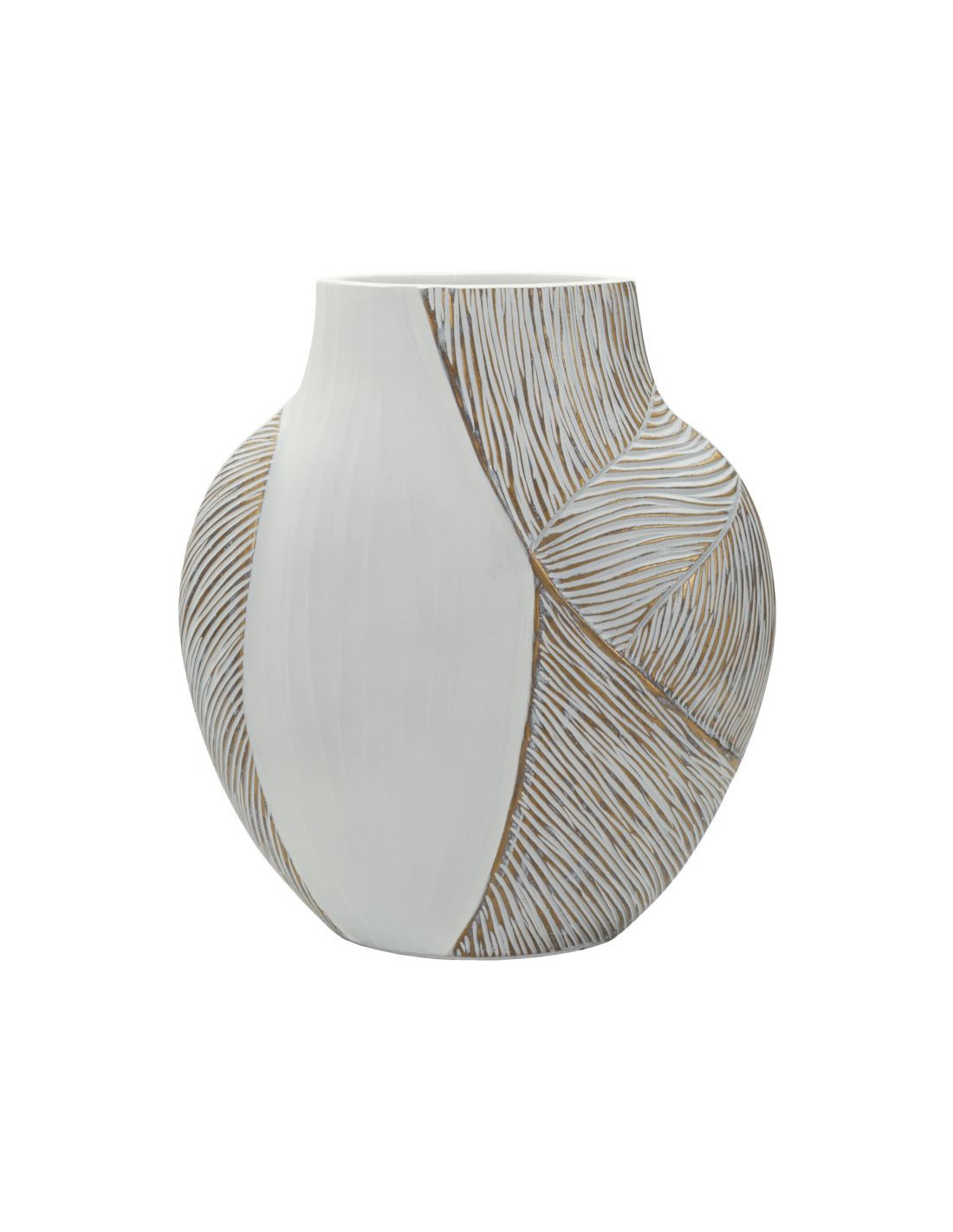 Vase moderne chic Ventru H 31 cm Résine Blanc Patiné Ho Chi Minh