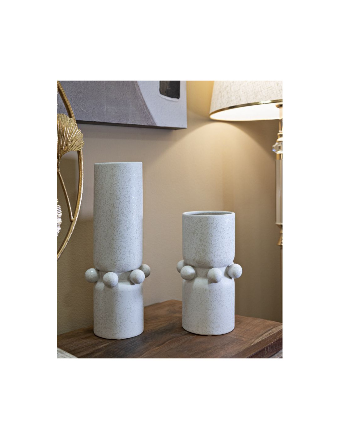 Vase moderne Cylindrique Hauteur 41 cm en Céramique Beige Bubbles
