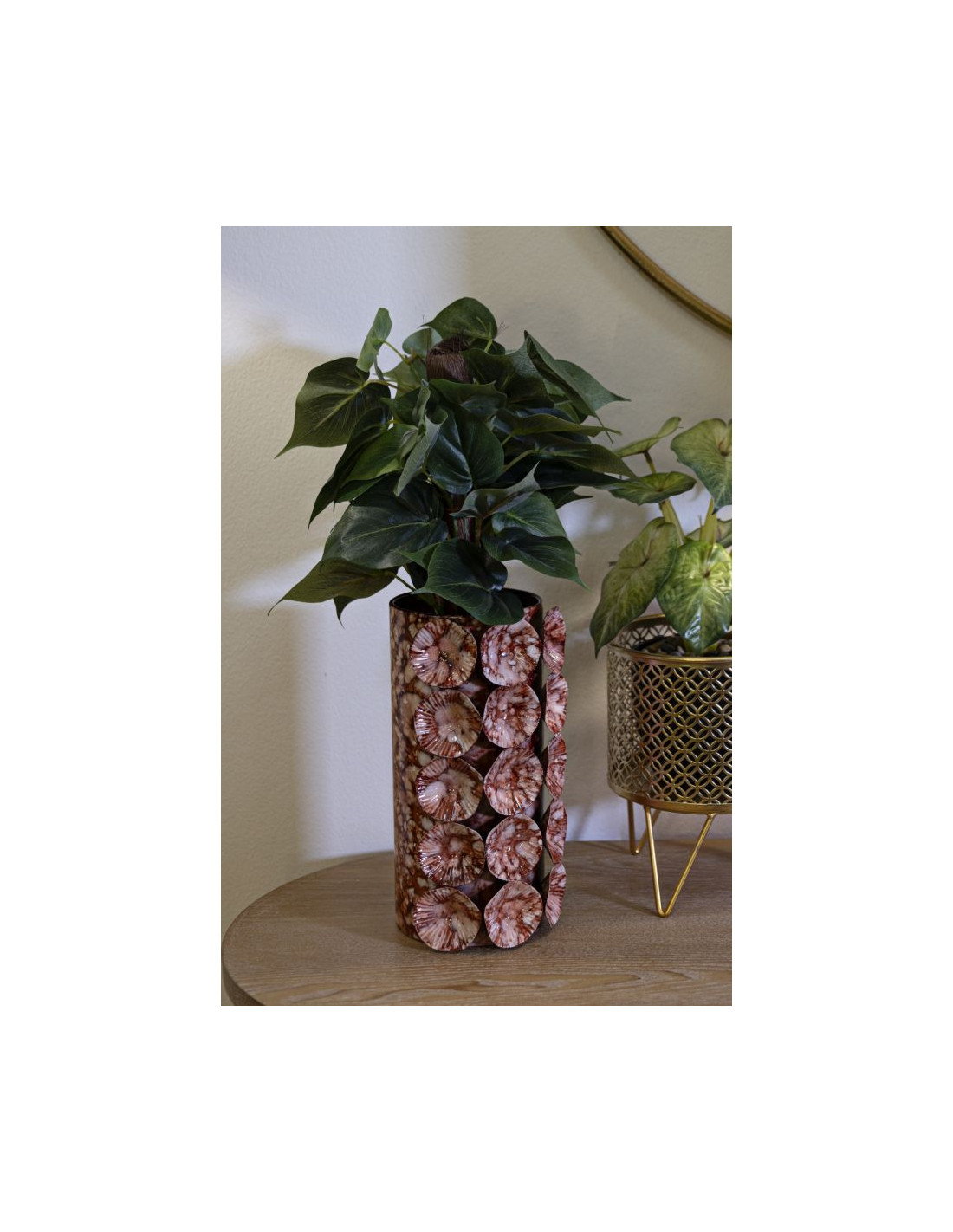 Vase moderne organique Cylindrique Hauteur 24 cm Métal Marron Drop