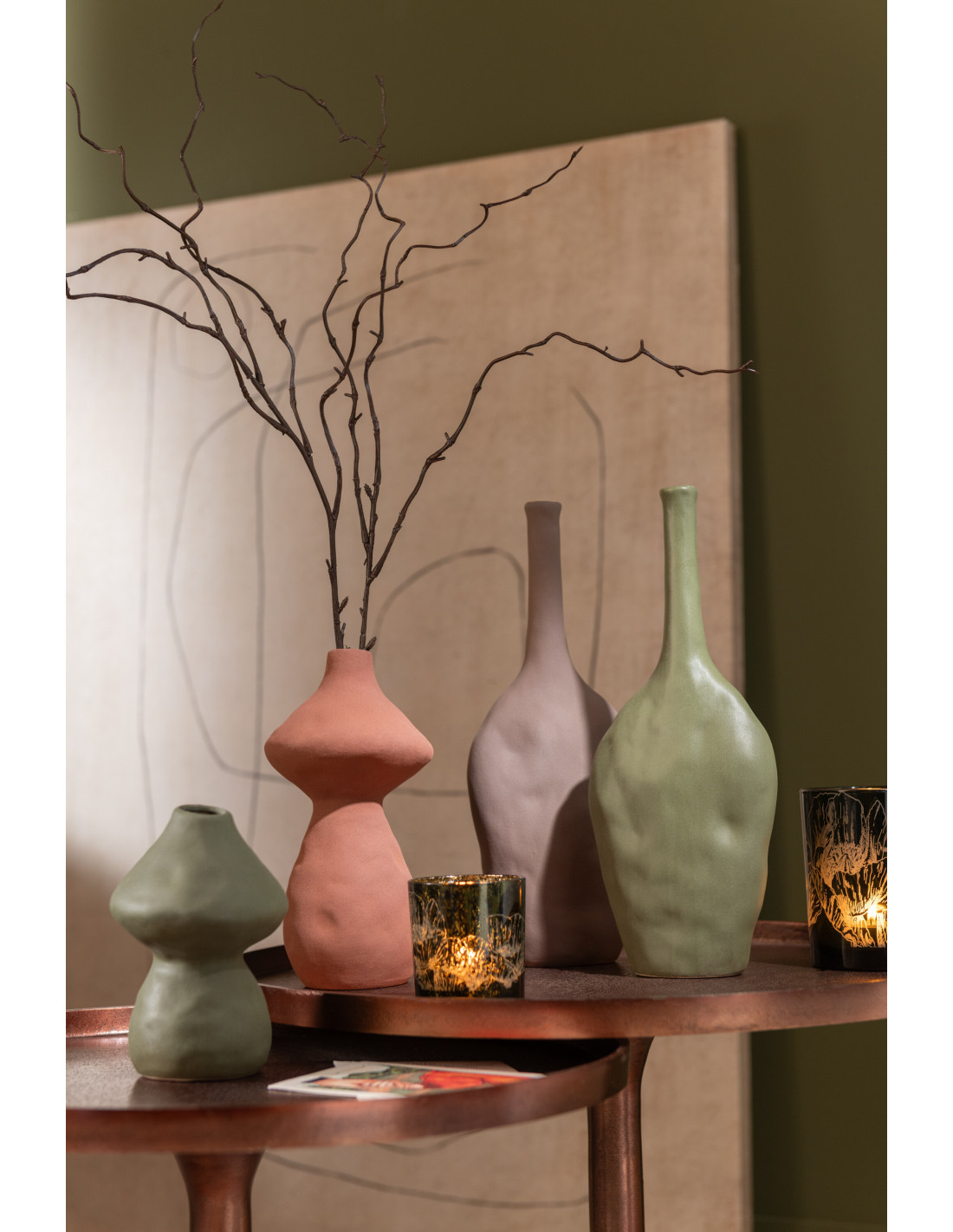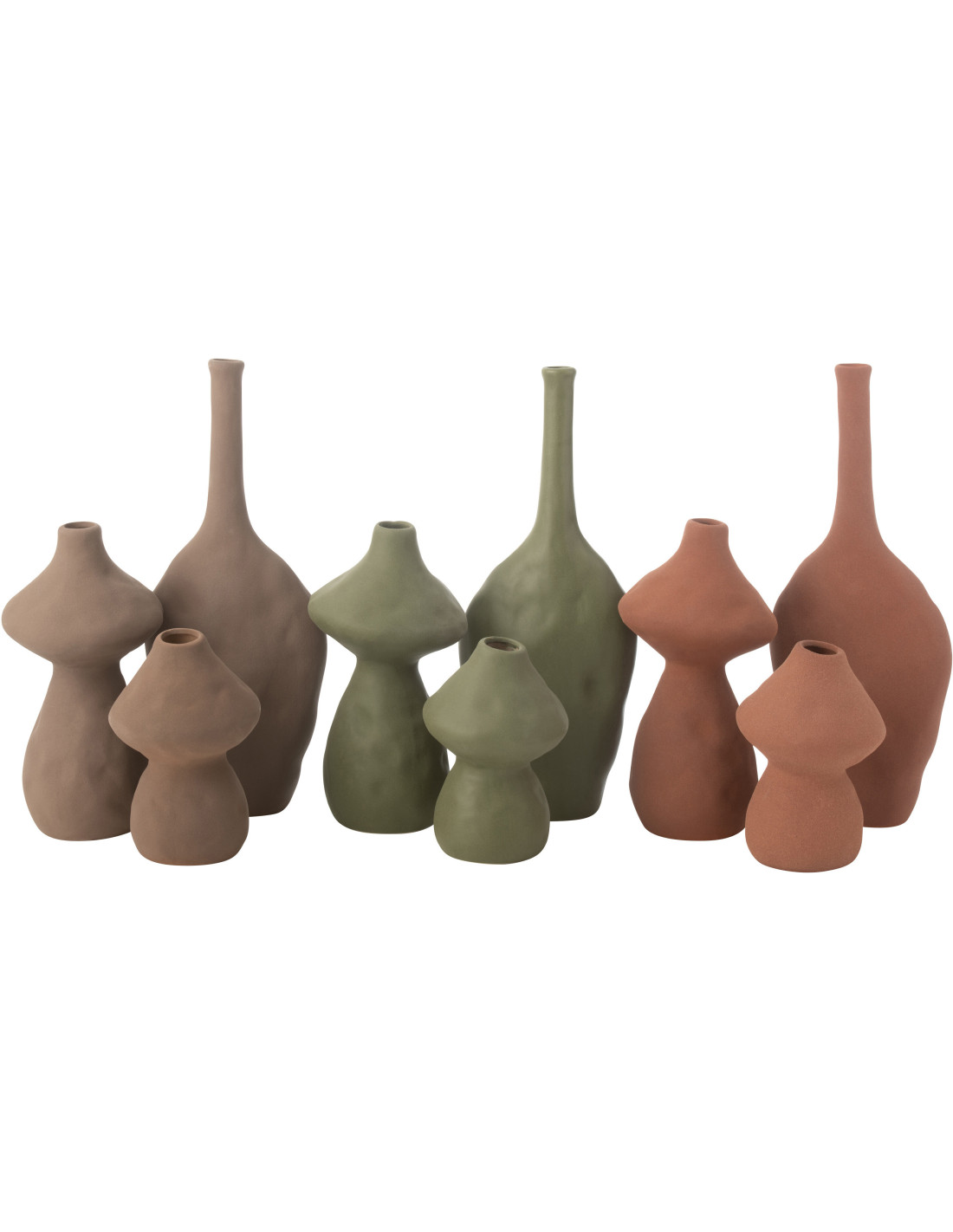 Vase moderne Ovale Hauteur 34 cm en Porcelaine Taupe Vert Terracotta Rixal (Lot de 3) - 1