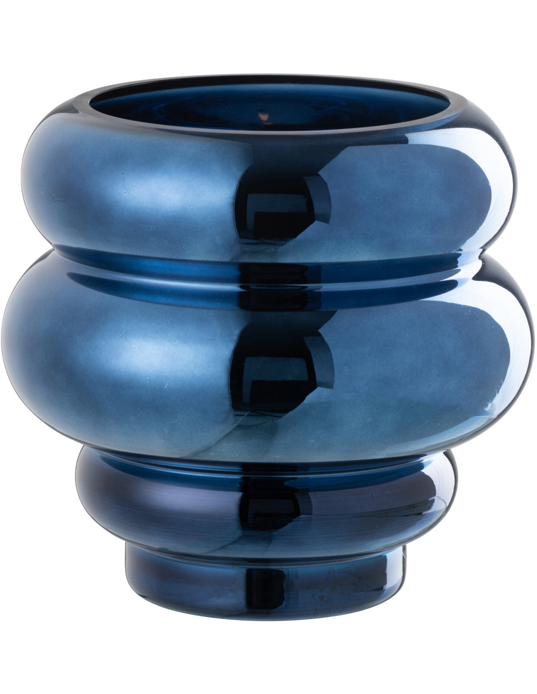 Vase moderne Rond Hauteur 20 cm en Verre Bleu Brillant Cléa - 1