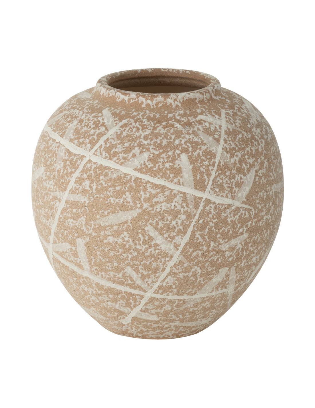 Vase moderne Rond Hauteur 21 cm en Grès Beige Blanc Dune