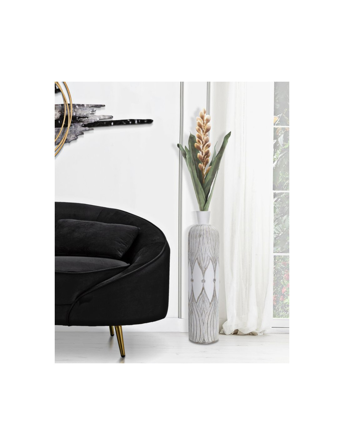 Vase moderne XL Bouteille Hauteur 60 cm en Résine Blanc Beige Atene