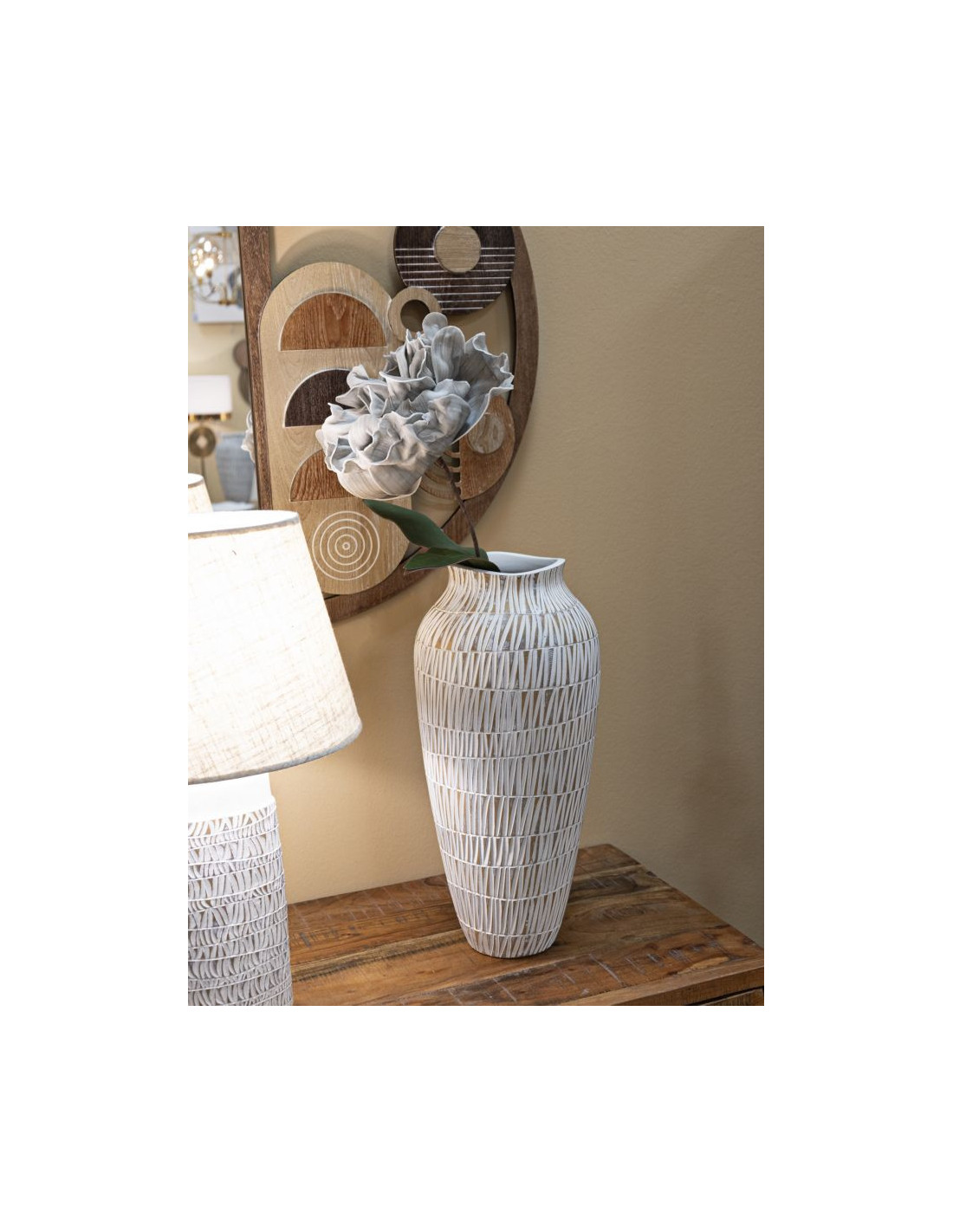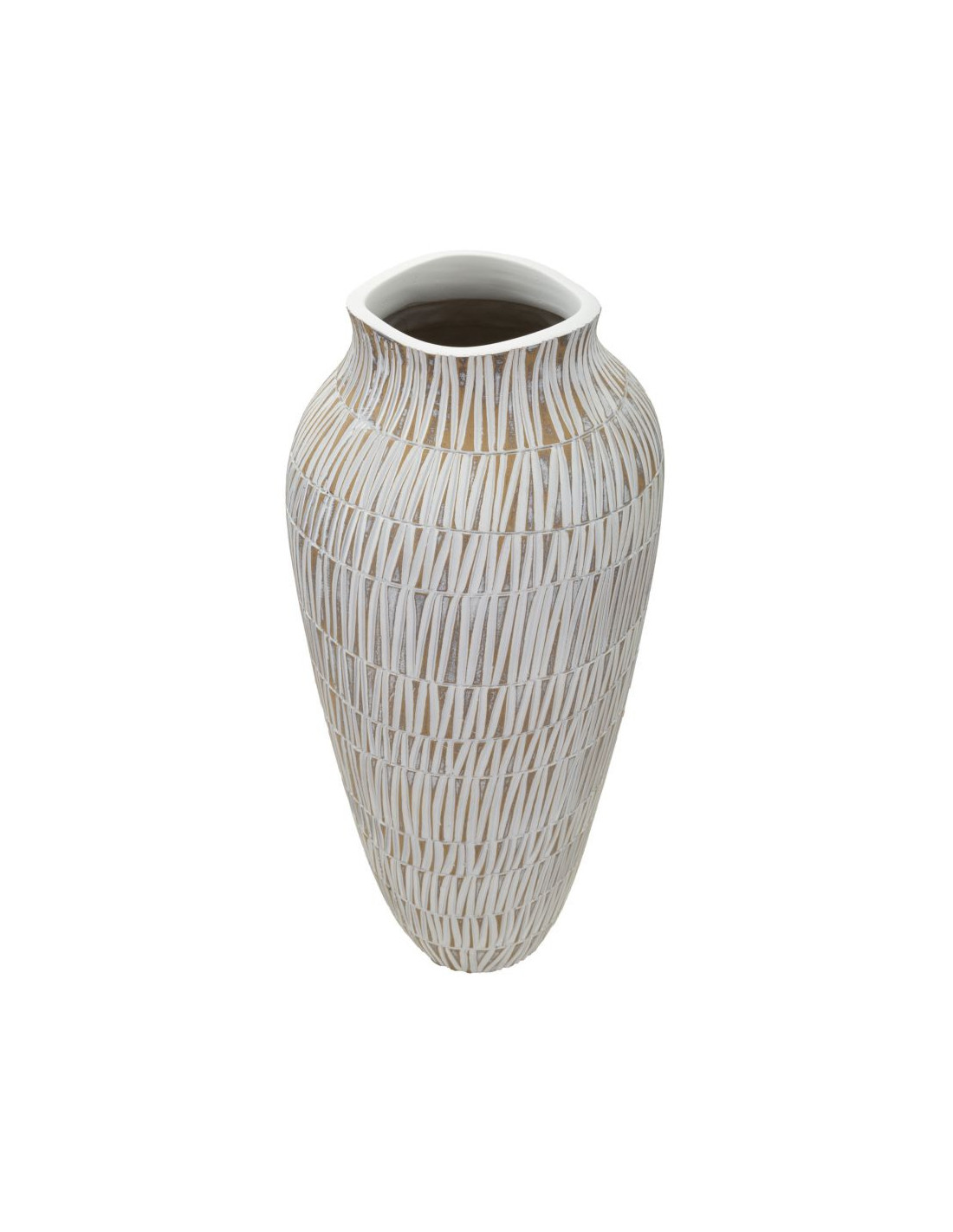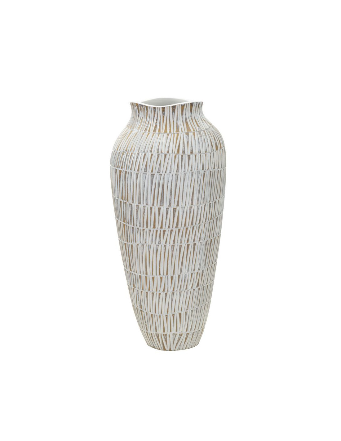 Vase moderne XL Rond Hauteur 50 cm en Résine Doré Blanc Stiky