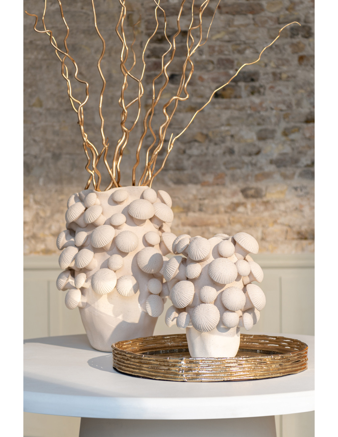 Vase original Champignons Rond Hauteur 32 cm en Argile Beige Fungi