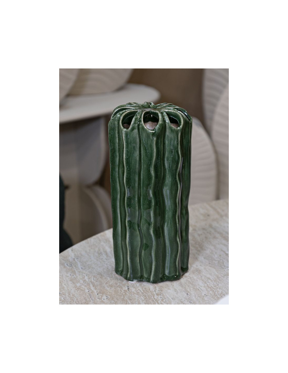 Vase original Cylindrique Hauteur 23 cm Céramique Vert Cactus
