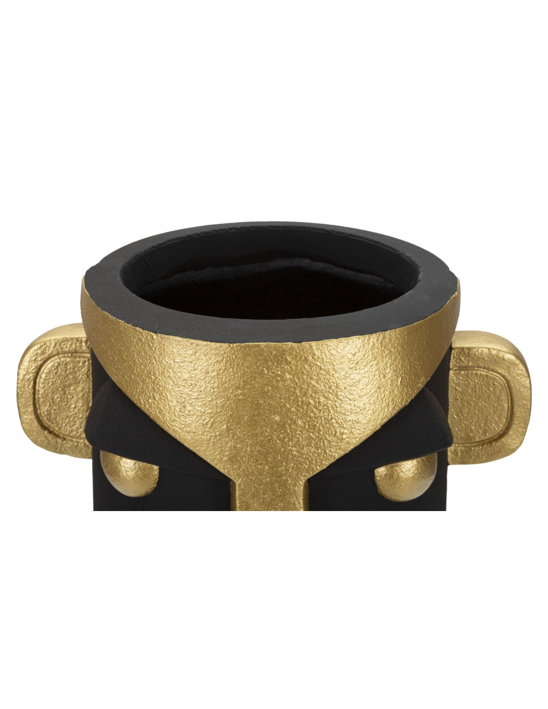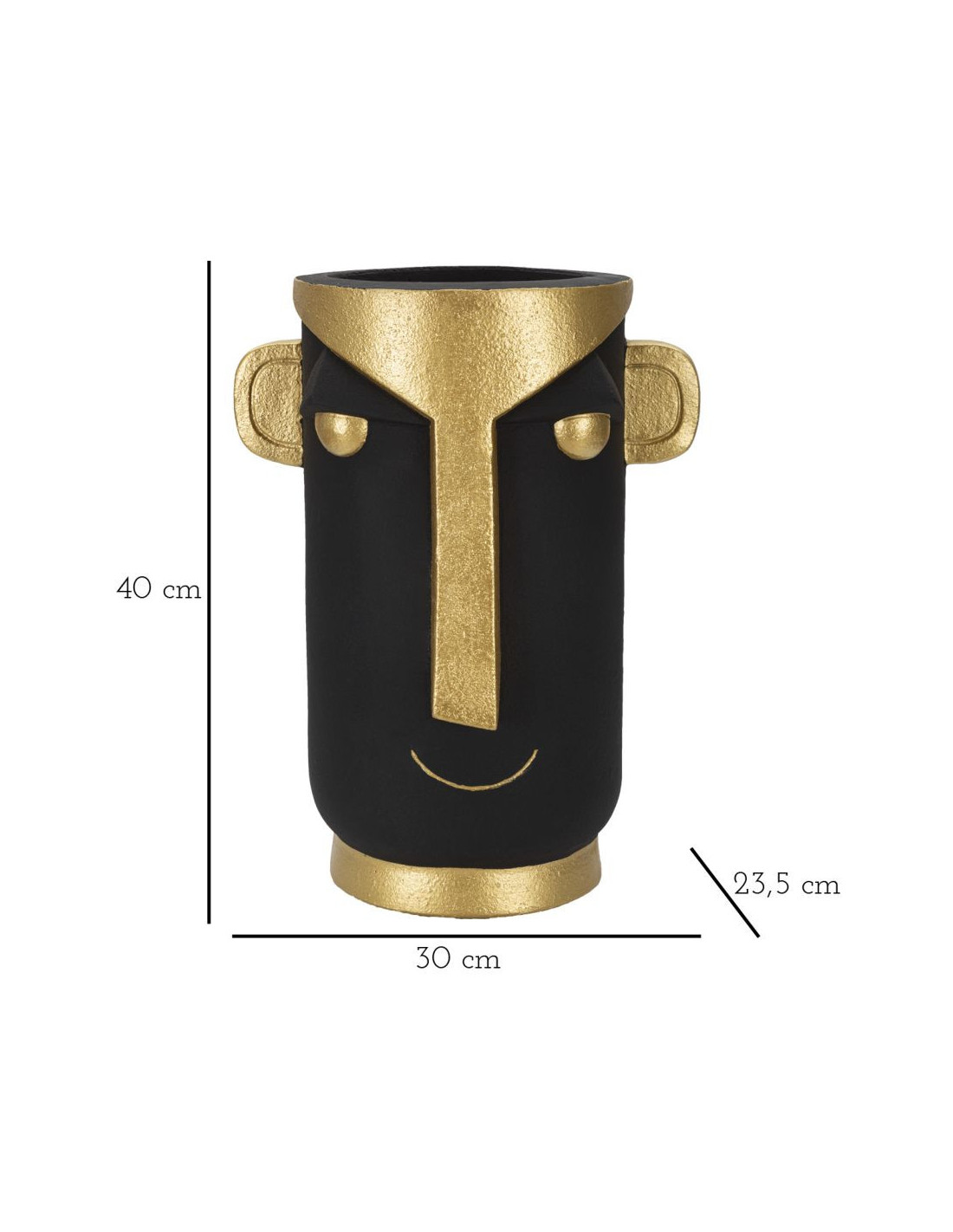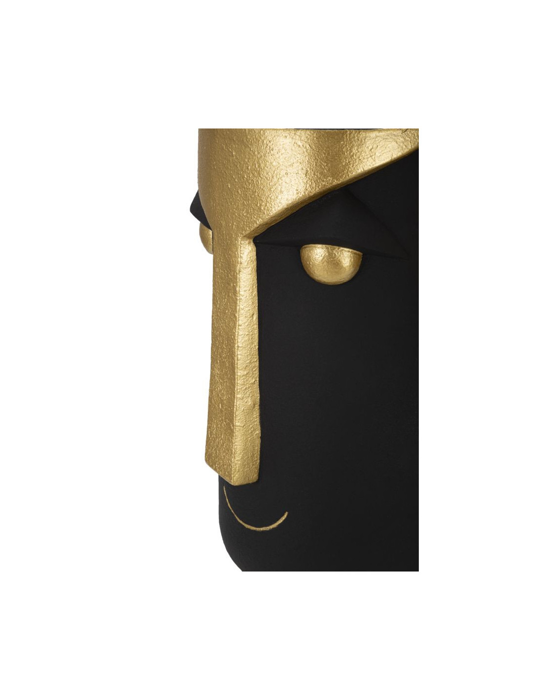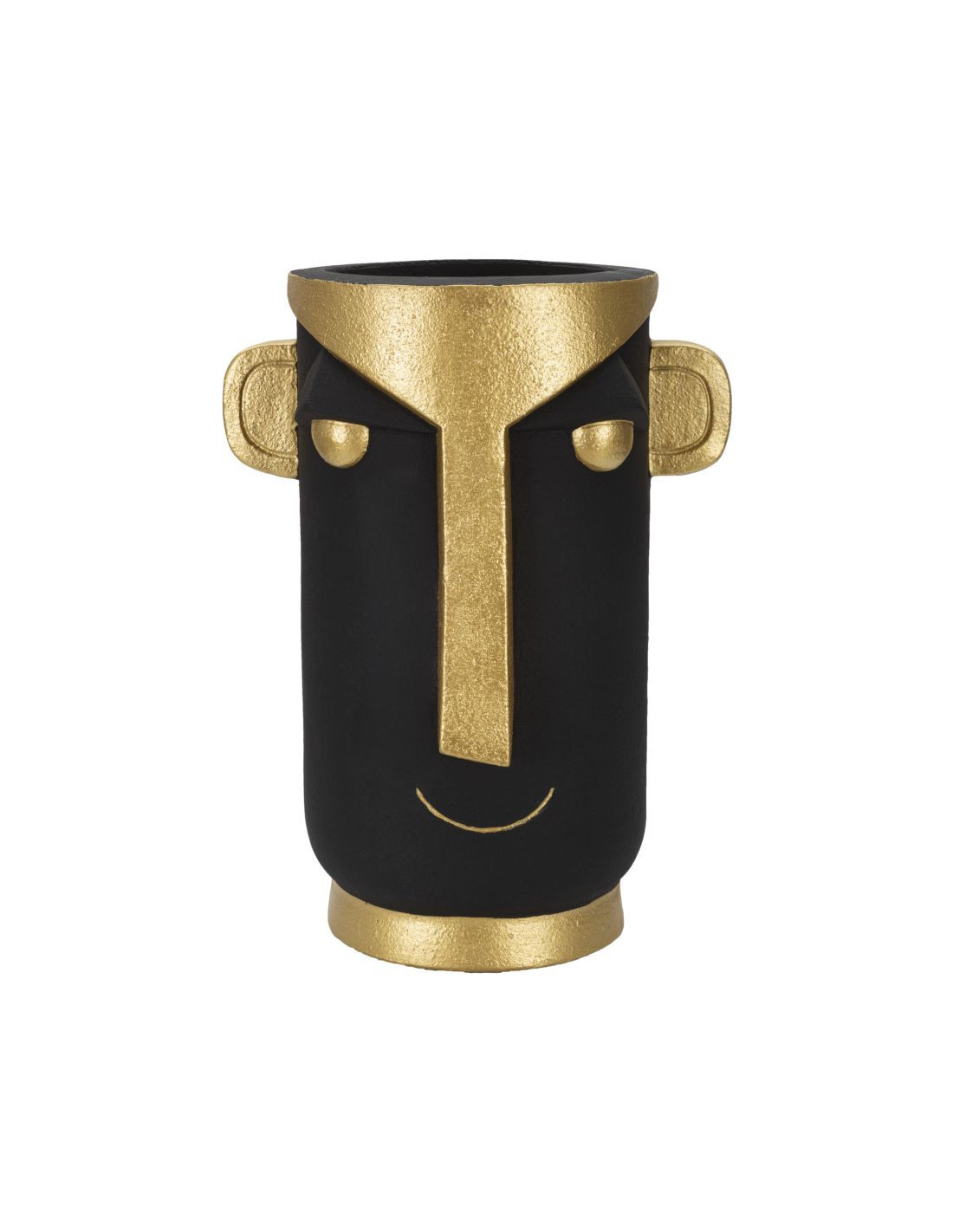Vase original ethnique Visage Rond Hauteur 40 cm en Résine Noir Doré Tribal