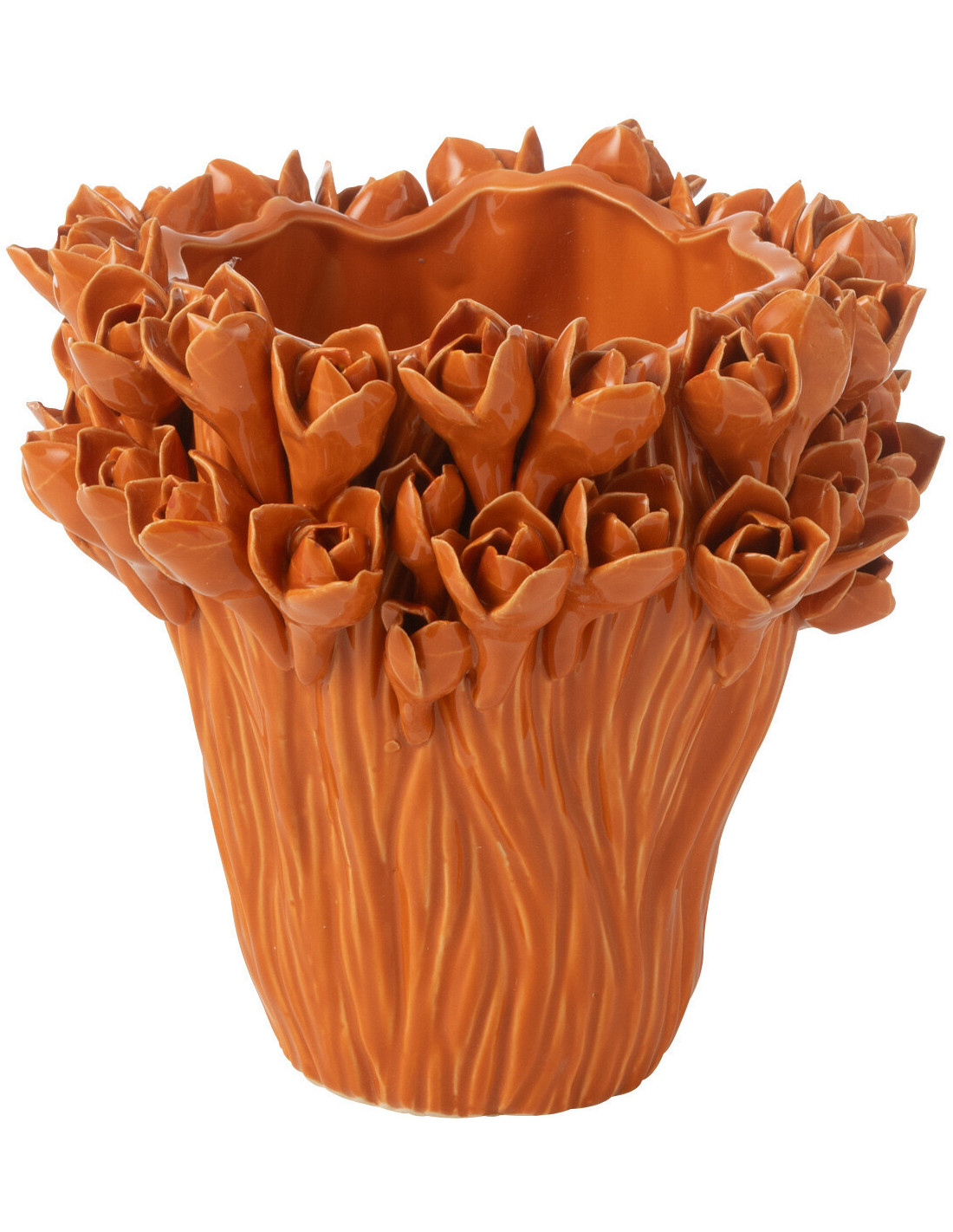 Vase original Fleurs Rond Hauteur 19 cm en Céramique Orange Ambrosia