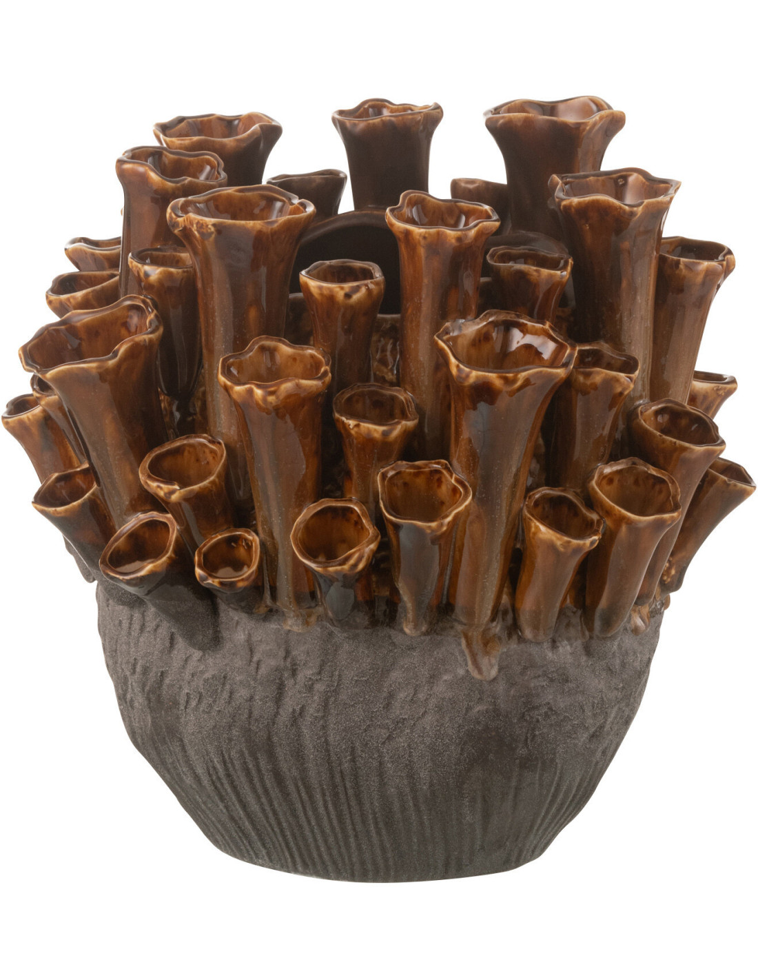 Vase original Hauteur 28 cm en Porcelaine Marron Gris Anémone