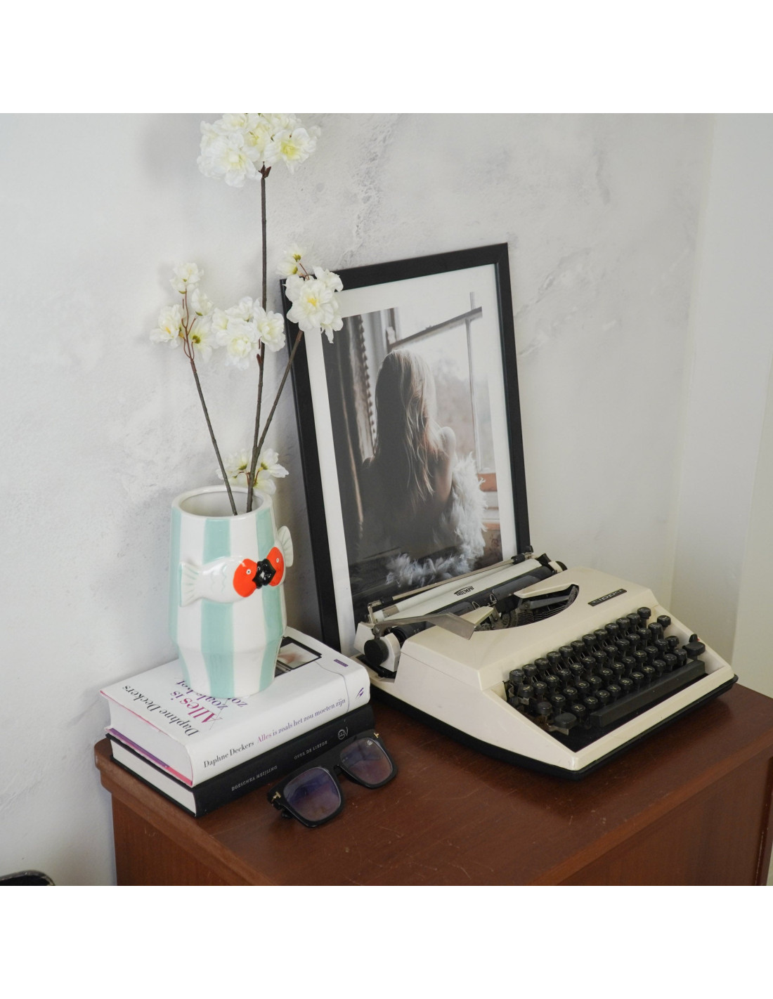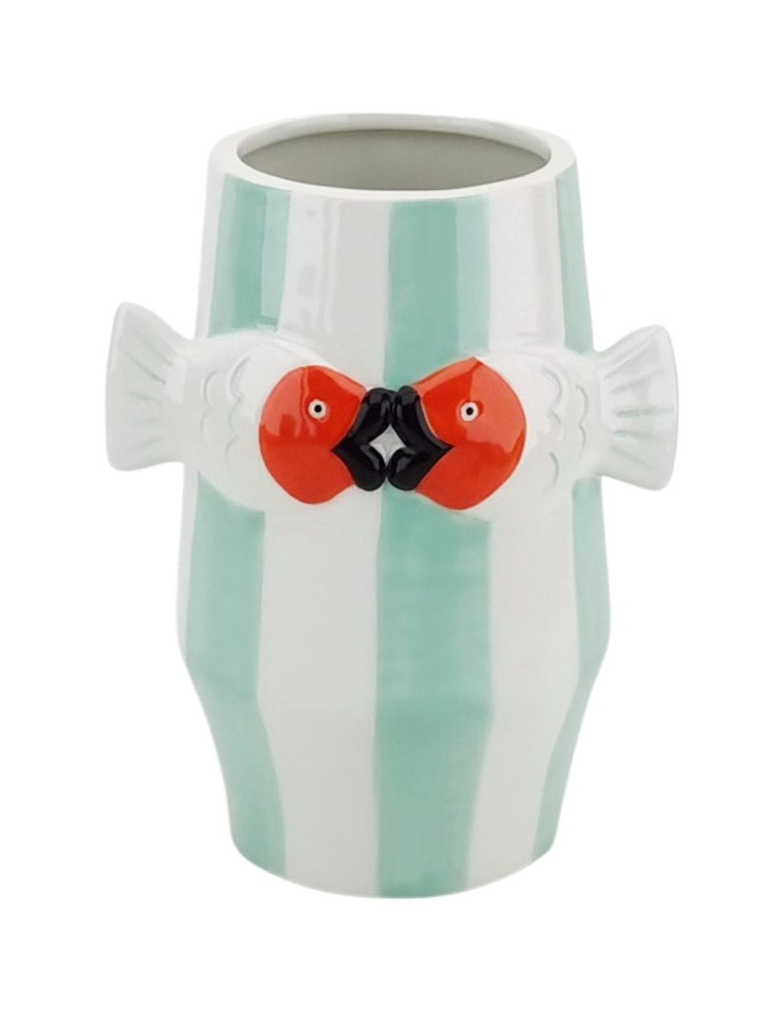 Vase original moderne Poissons Rond Hauteur 18 cm Céramique Vert menthe Blanc Fishes