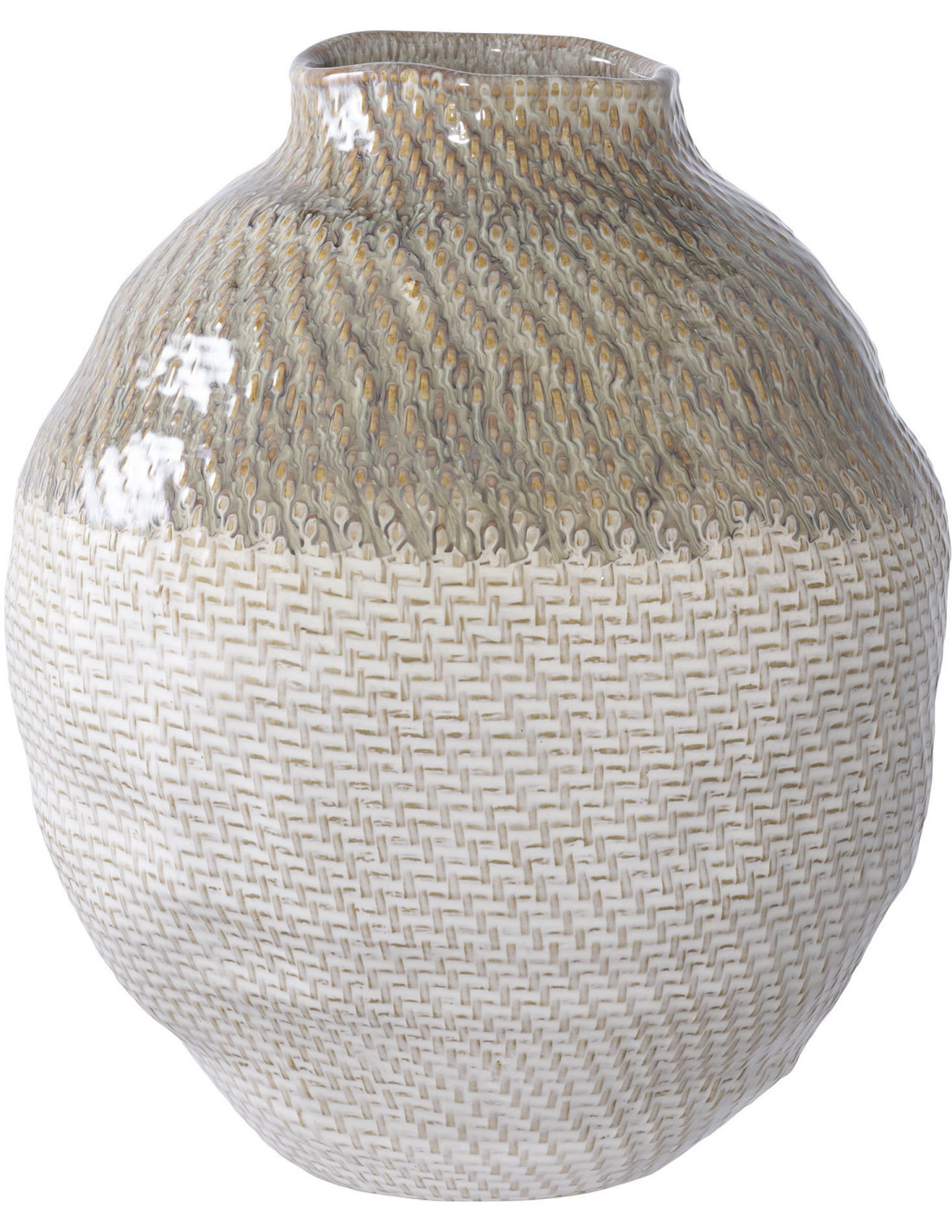 Vase original Rond Hauteur 30 cm Céramique Blanc Vert Motif tressage Aarhus