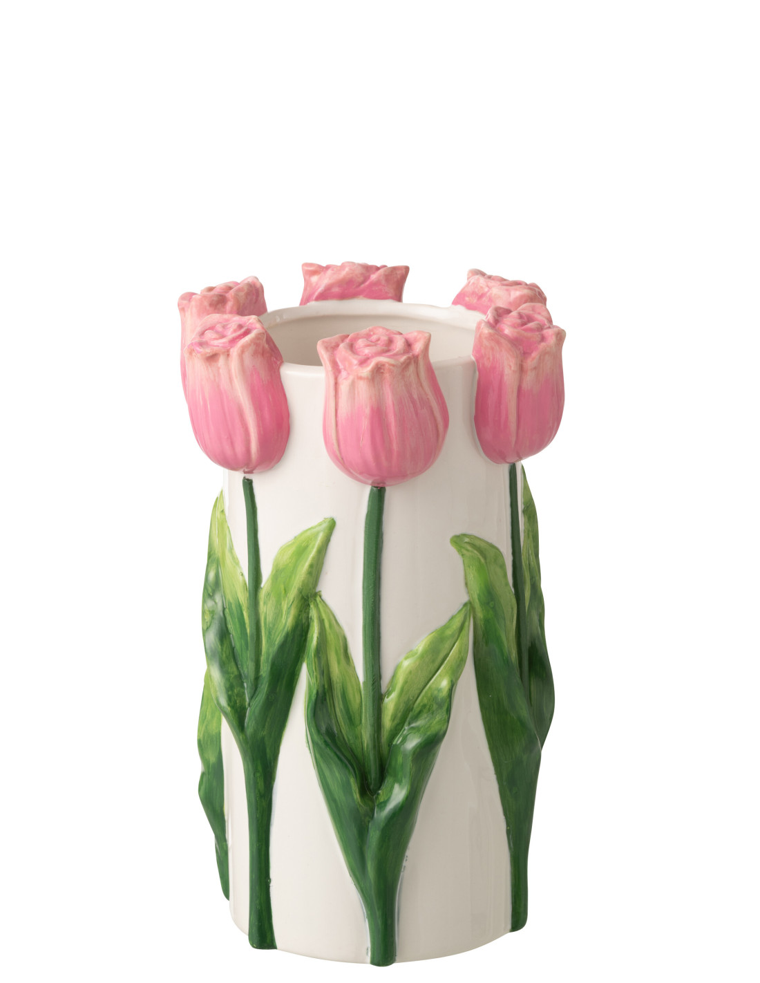 Vase original Tulipes Cylindrique H 27 cm Céramique Rose Vert Blanc Tylia
