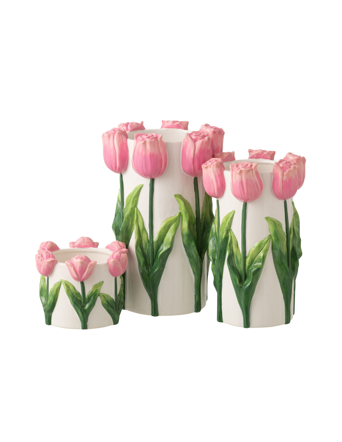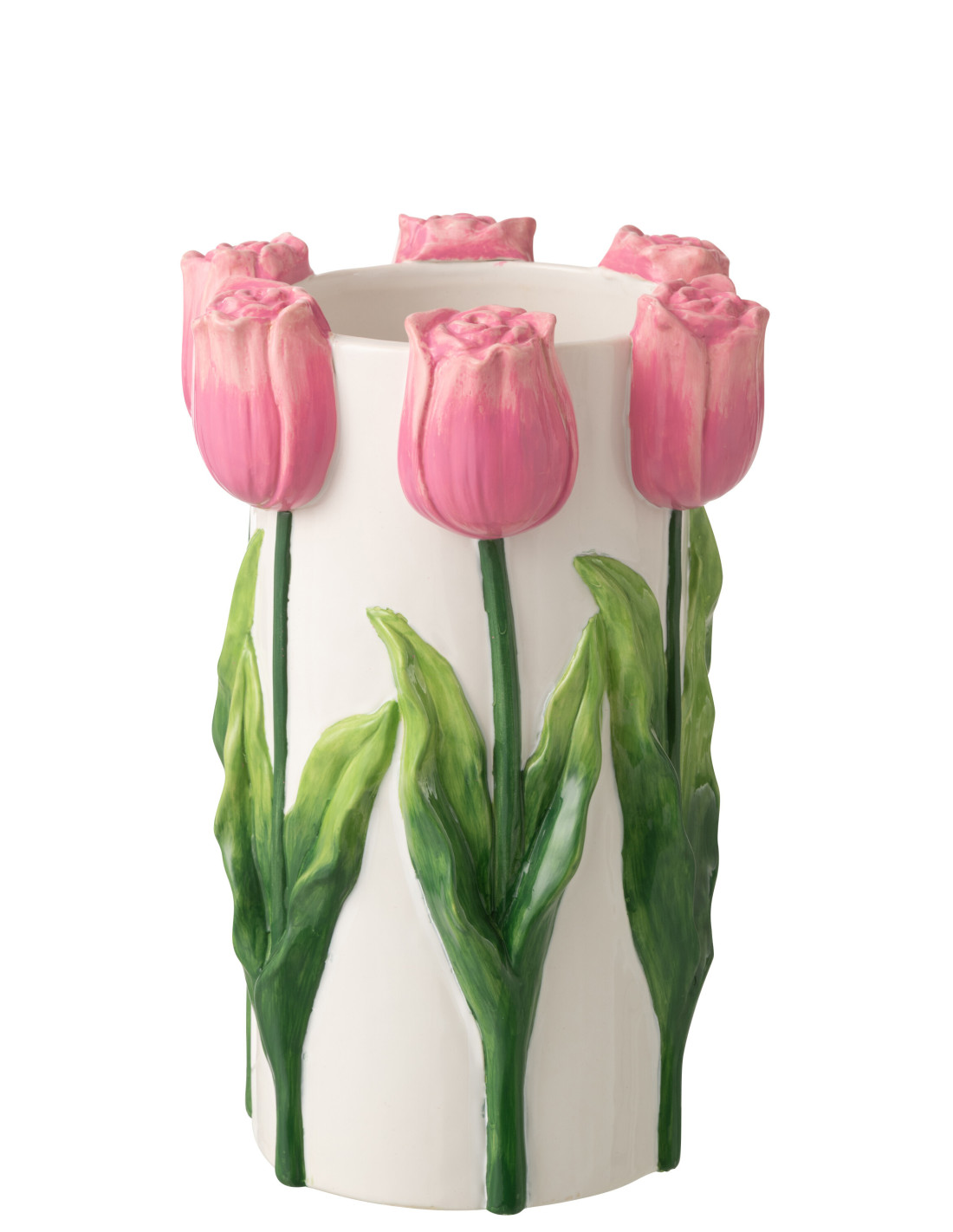 Vase original Tulipes Cylindrique H 36 cm Céramique Rose Vert Blanc Tylia