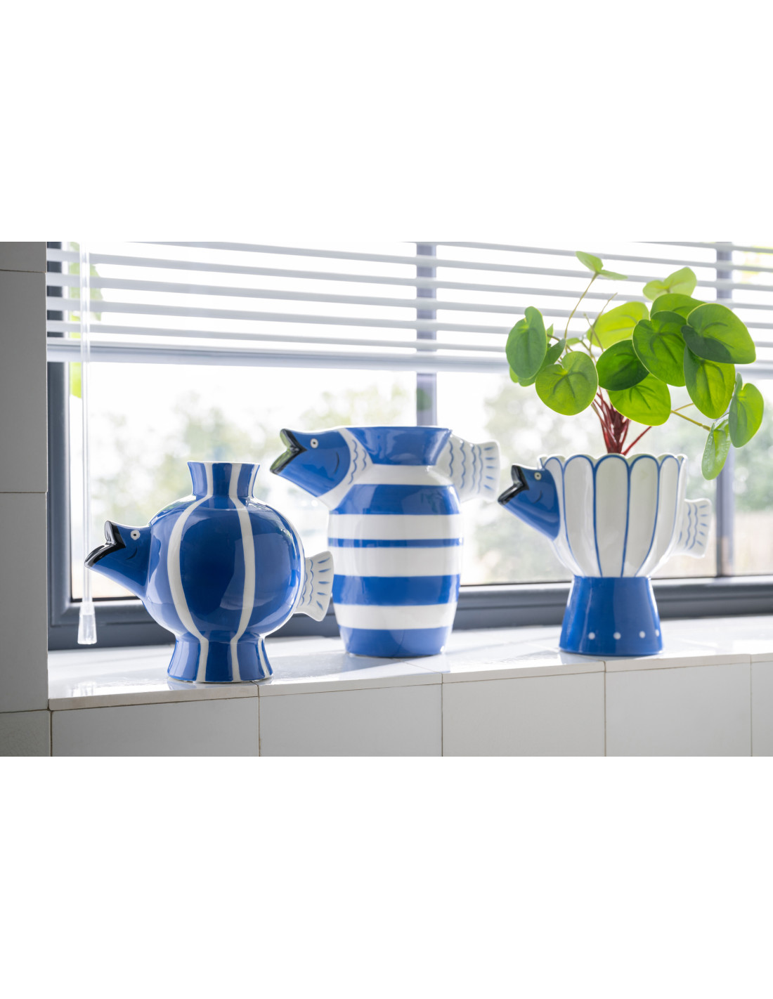 Le vase Marinella revisite la forme du poisson avec un volume généreux et arrondi. Cette silhouette boule lui donne une présence forte et un côté presque artistique.