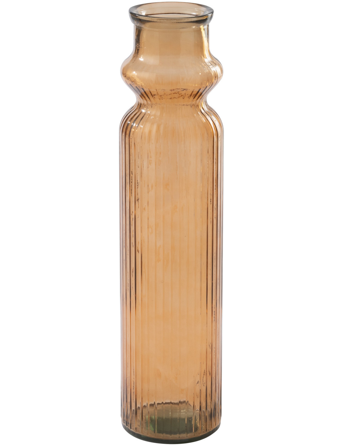 Le verre rainuré crée des reflets délicats, amplifiant la profondeur de sa teinte orange.
