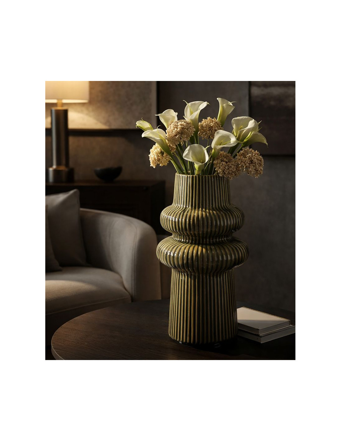 Vase style seventies modernisé Totem H 36 cm Céramique Vert Harmony