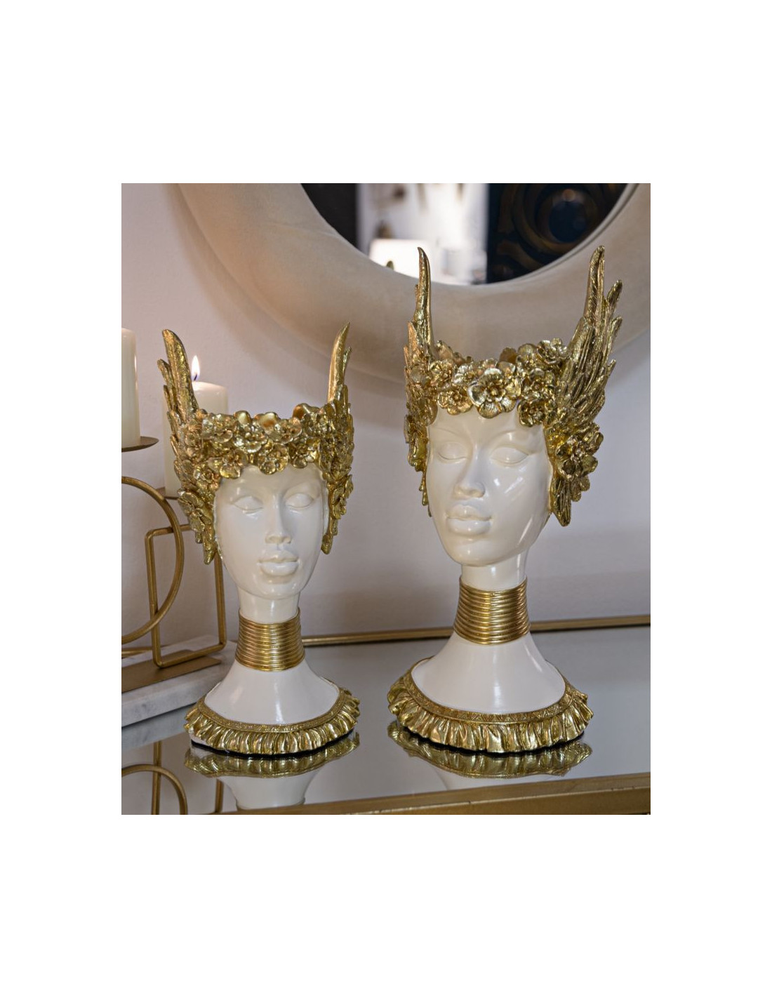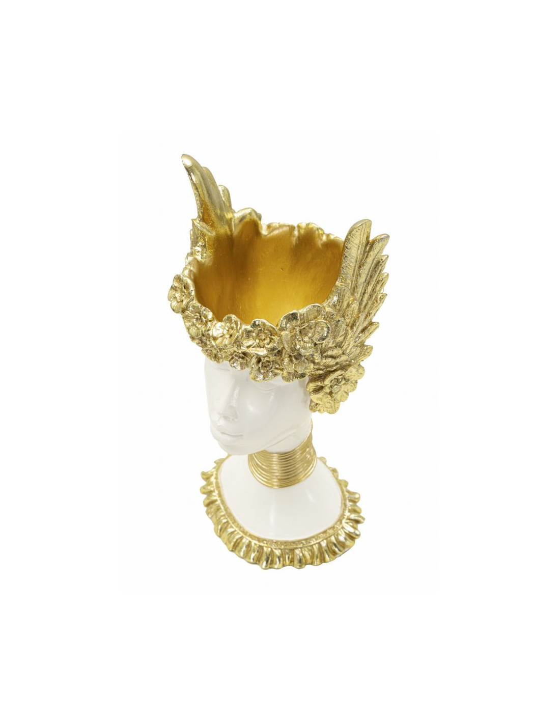 Vide poche original moderne Hauteur 32 cm en Résine Blanc Doré Athena