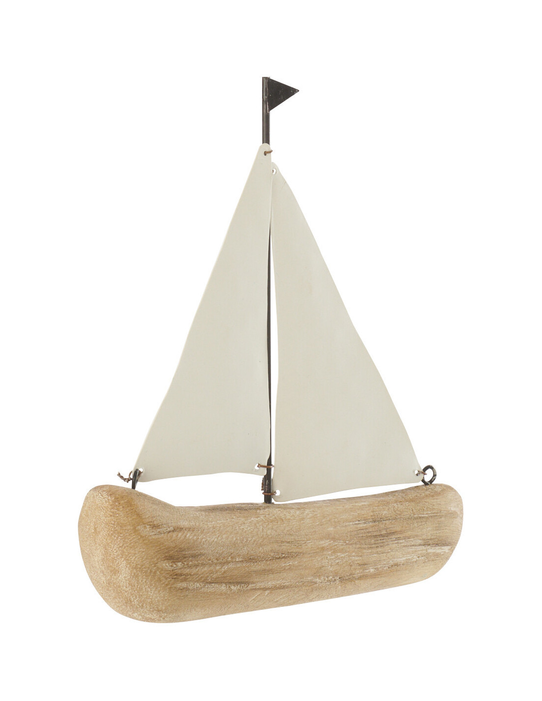 Voilier déco bord de mer H 19 cm Bois de paulownia Naturel Blanc Nautina