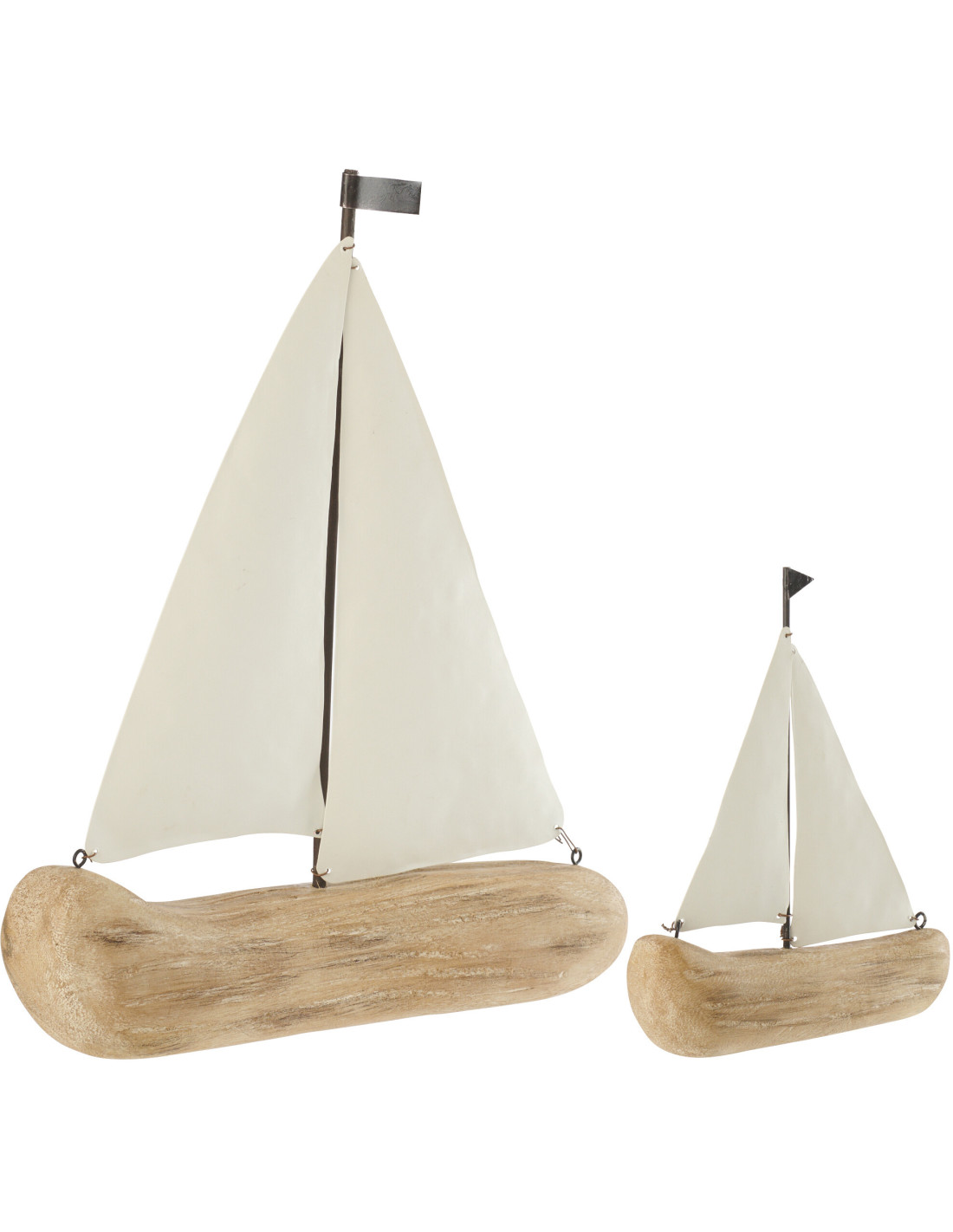 Voilier déco bord de mer H 31 cm Bois de paulownia Bleu clair Blanc Naturel Nautina