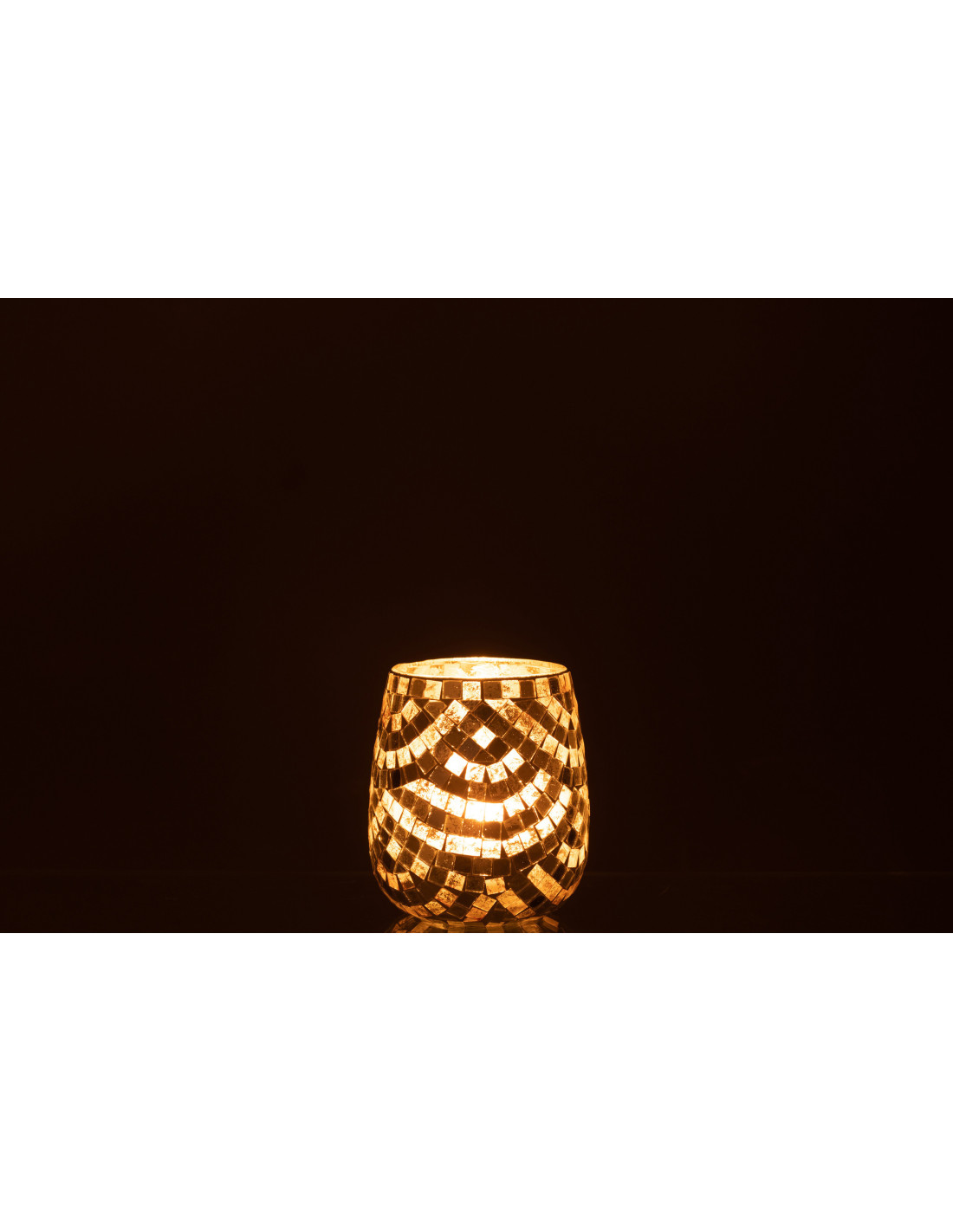 WHISDOM - Photophore original mosaïque argent et doré H12 cm