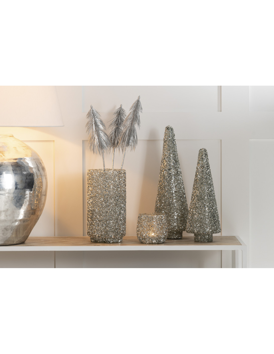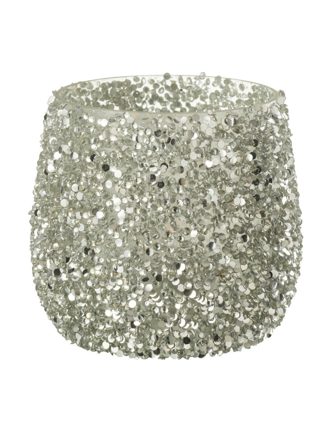 XYLON - Photophore en verre avec paillettes argentées 10 cm